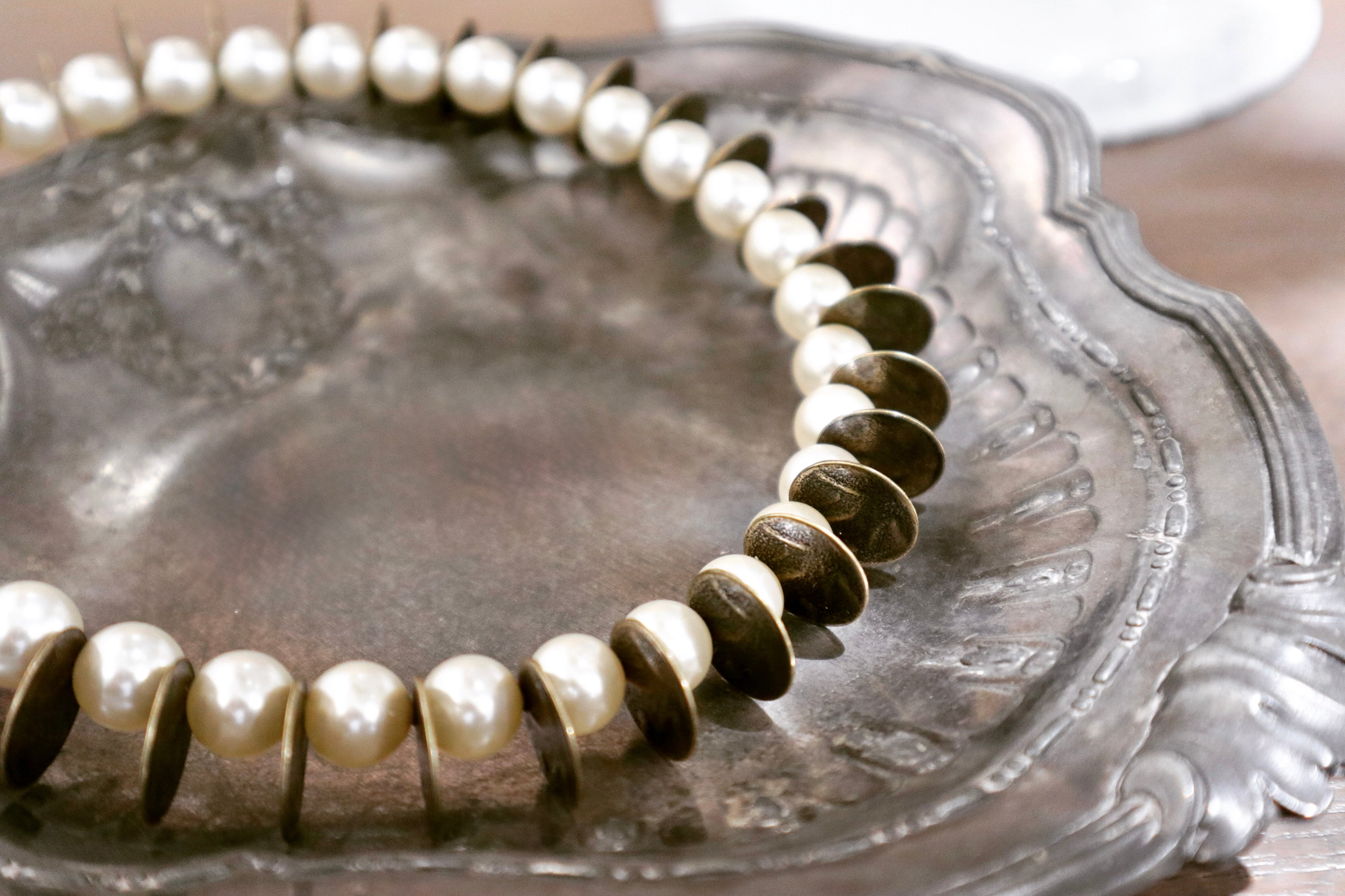 経年劣化によるパール、ビーズ、クリスタル、天然石、メタル部分などの変色や汚れはお修理できかねますので予めご了承ください。