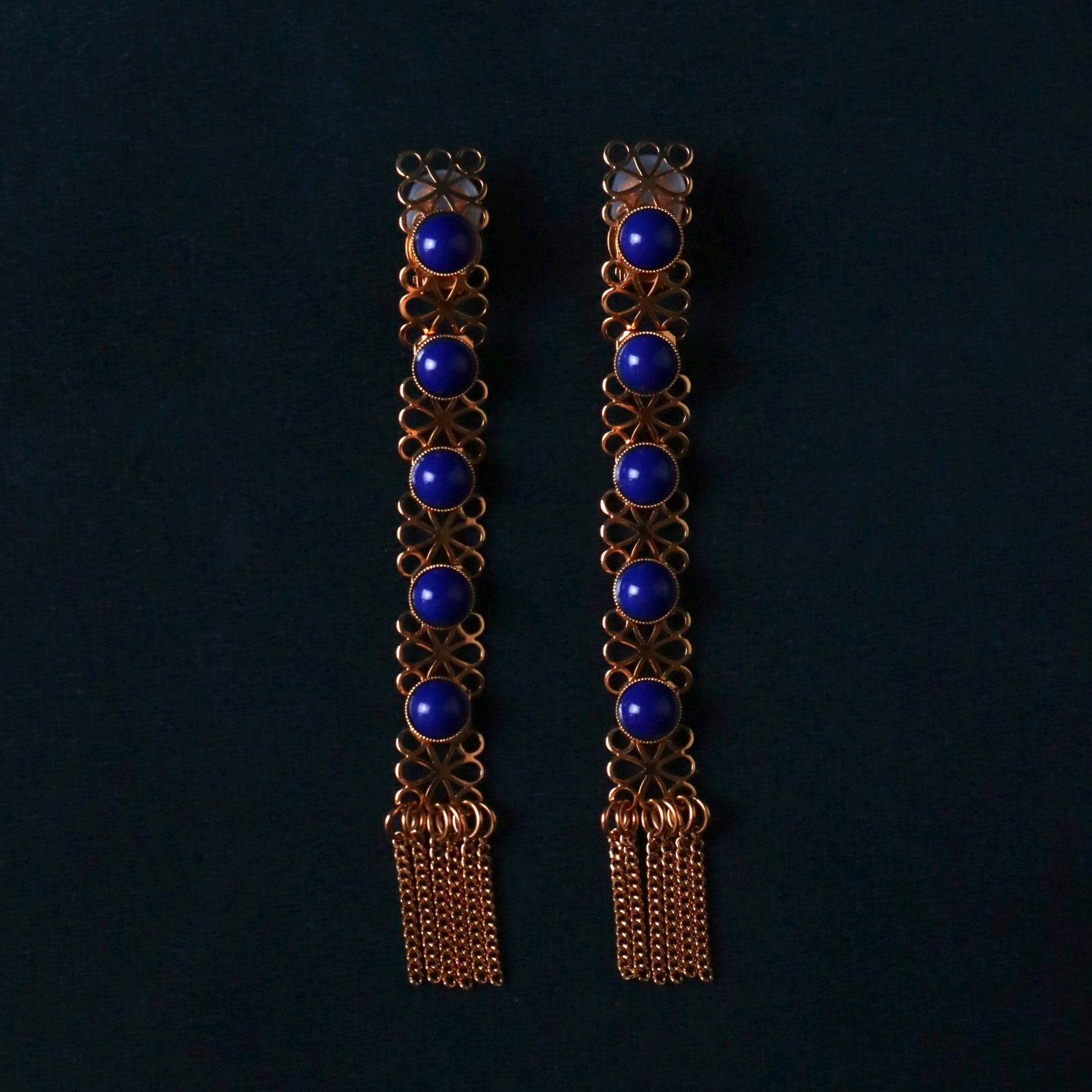 The navy blue cabochon that resembles lapis lazuli is a vintage Swarovski crystal.