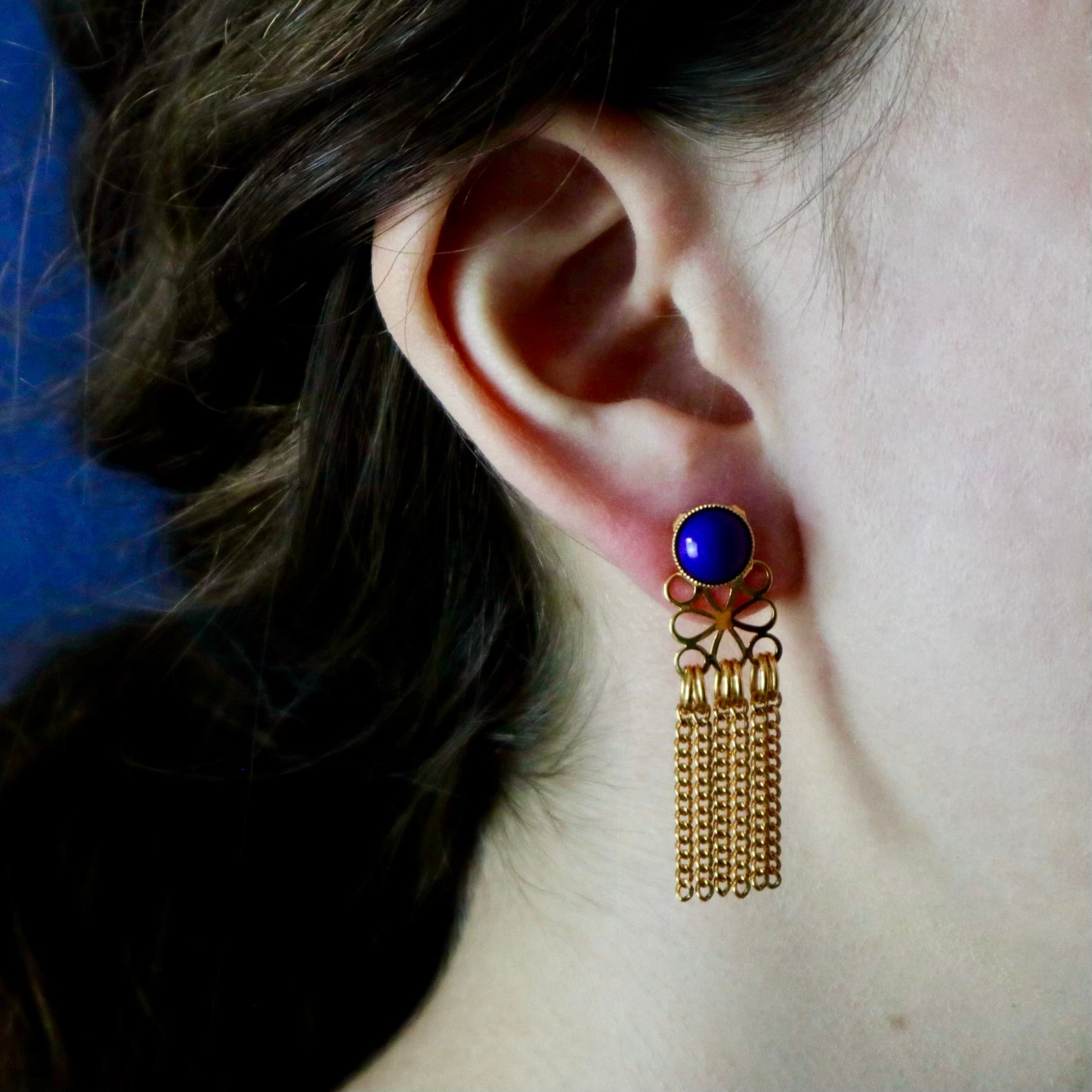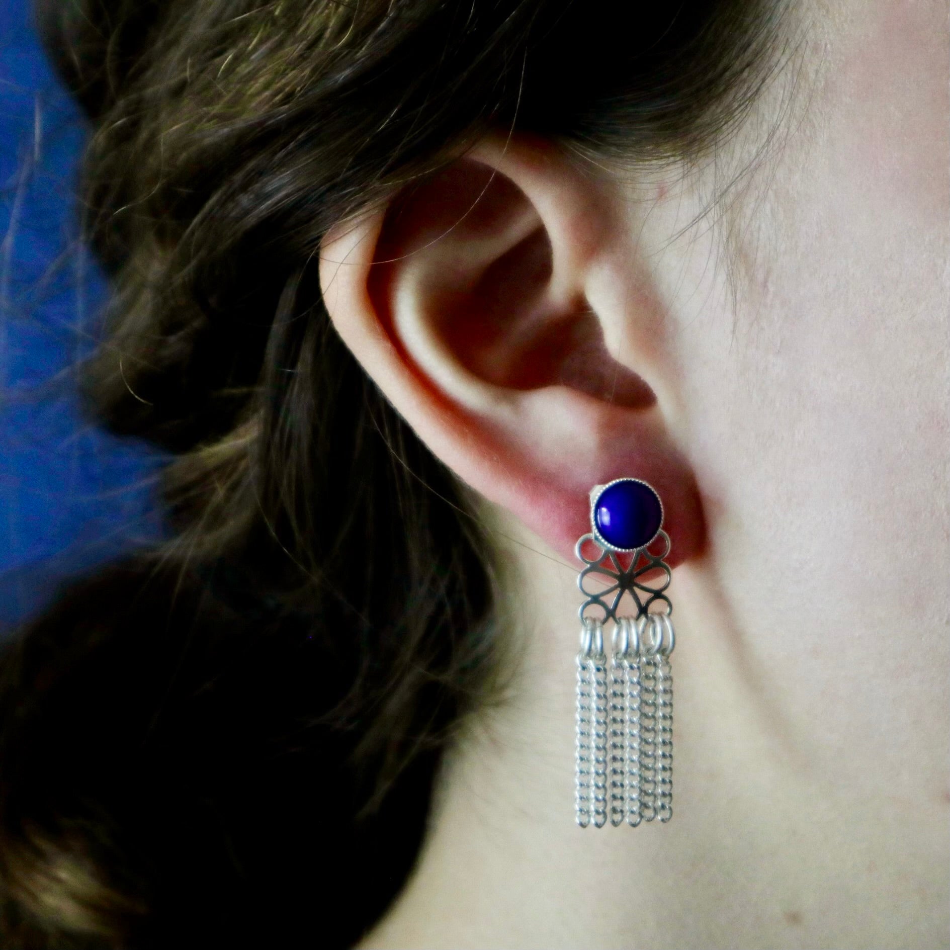 The navy blue cabochons that resembles lapis lazuli are vintage Swarovski crystals.