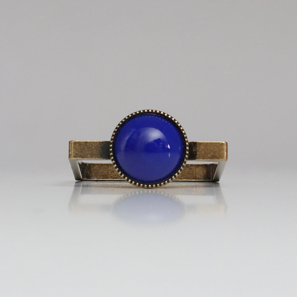 The deep navy blue cabochon is a vintage Swarovski crystal.