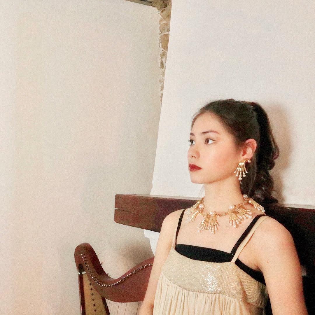 Collection inspirée par l’Anémone de Mer, ce collier unique est fabriqué à la main en laiton doré à l'or fin 24k avec les perles nacrées en cristaux de Swarovski.