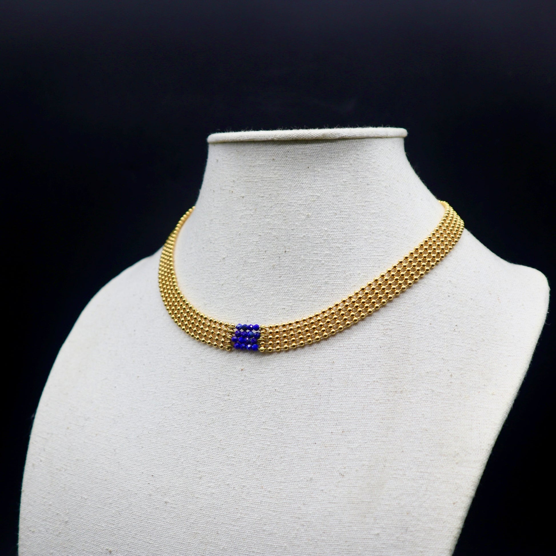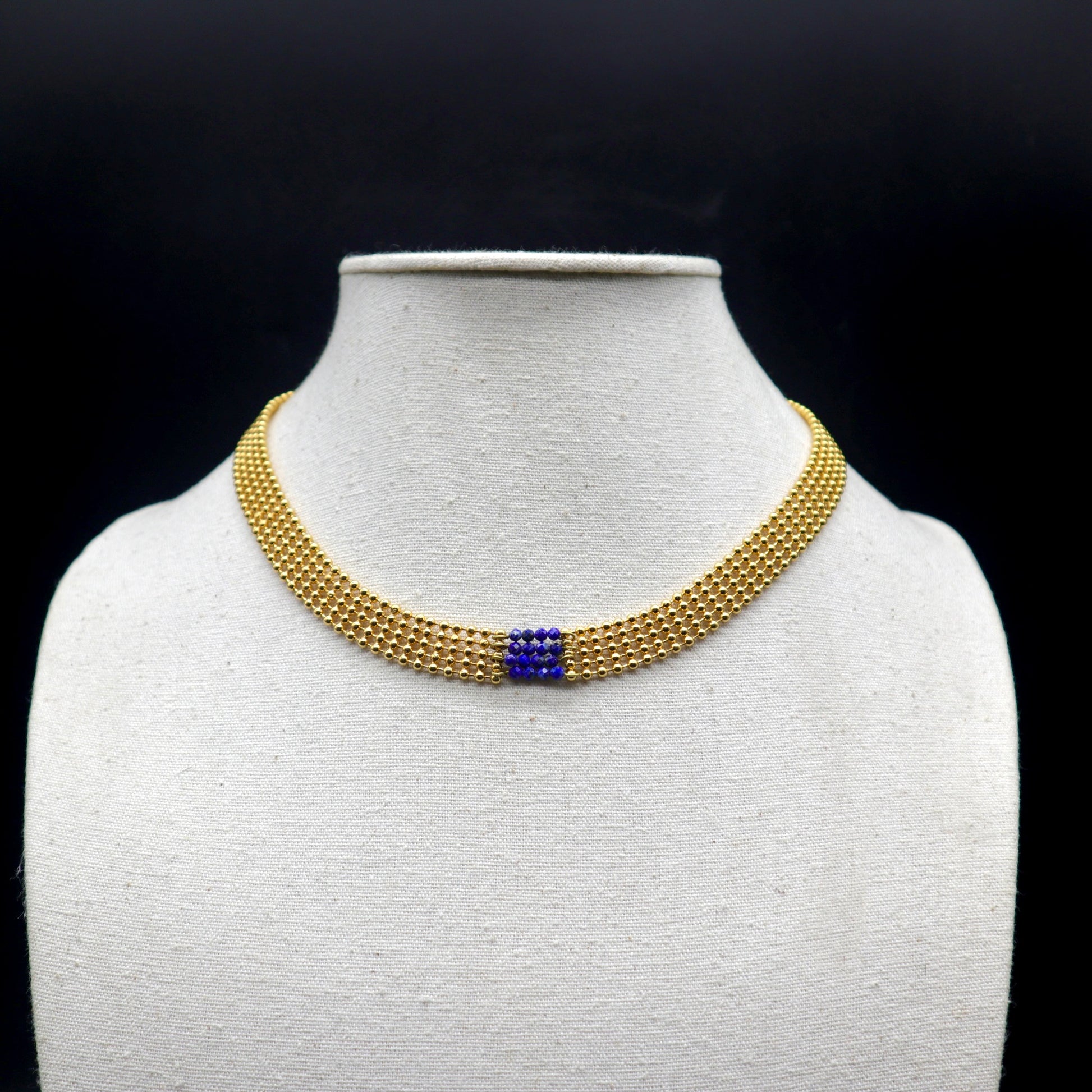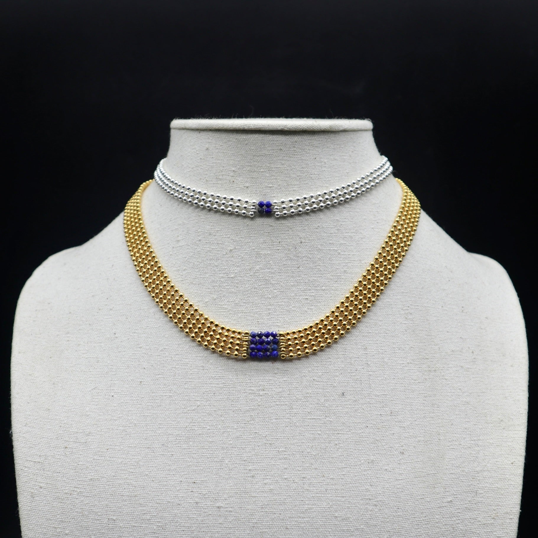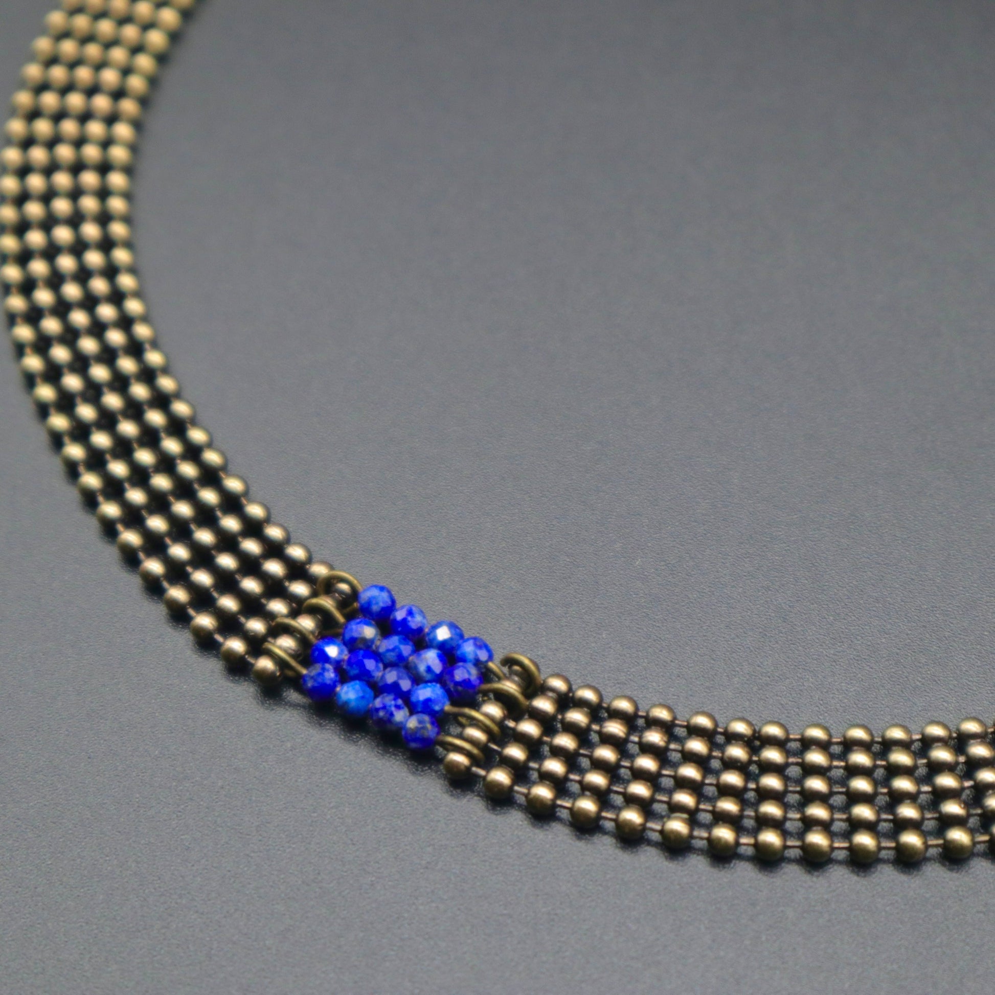 Les perles facettées en lapis-lazuli naturel de grade A brillent au centre du collier.