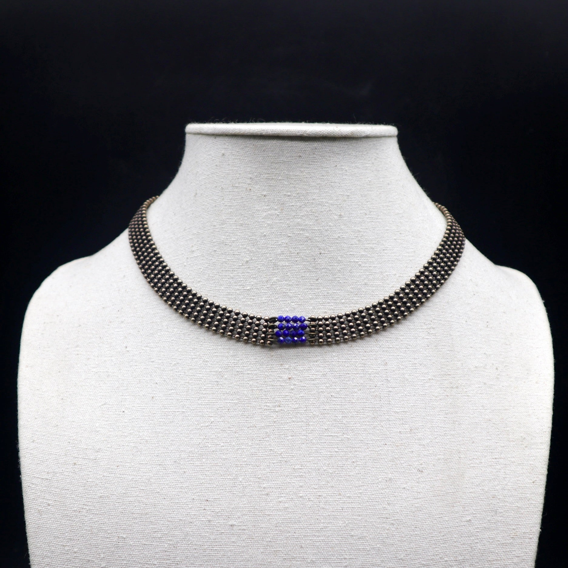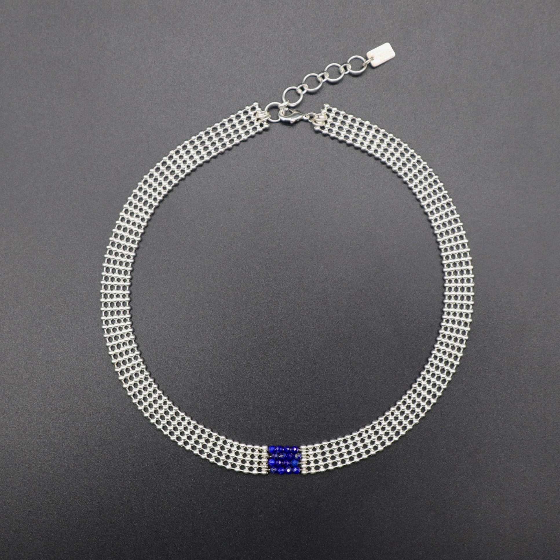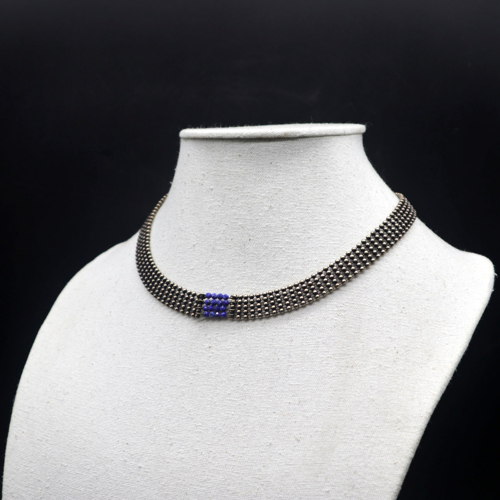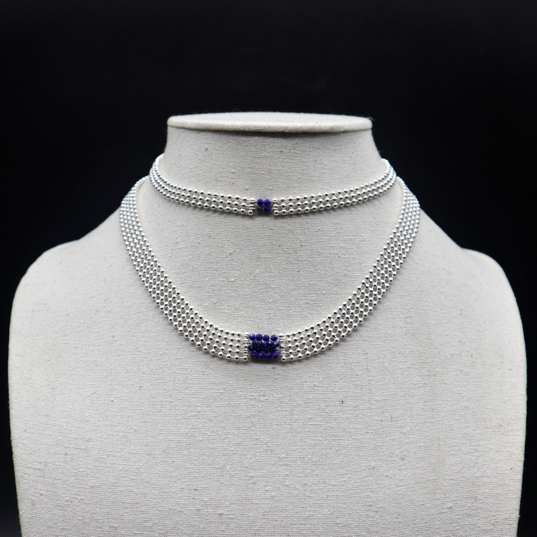 Les perles facettées en lapis-lazuli naturel de grade A brillent au centre du collier.