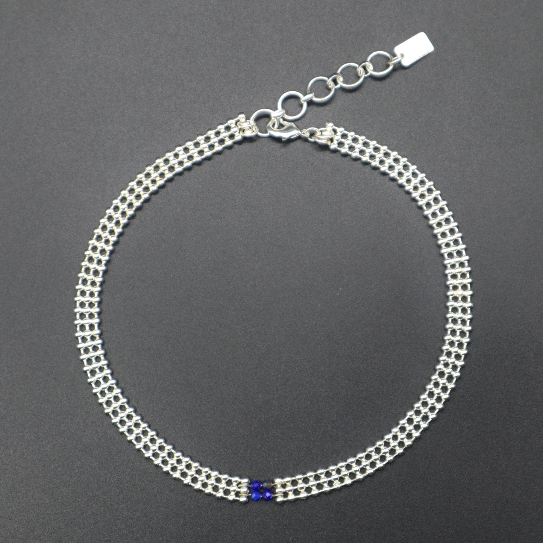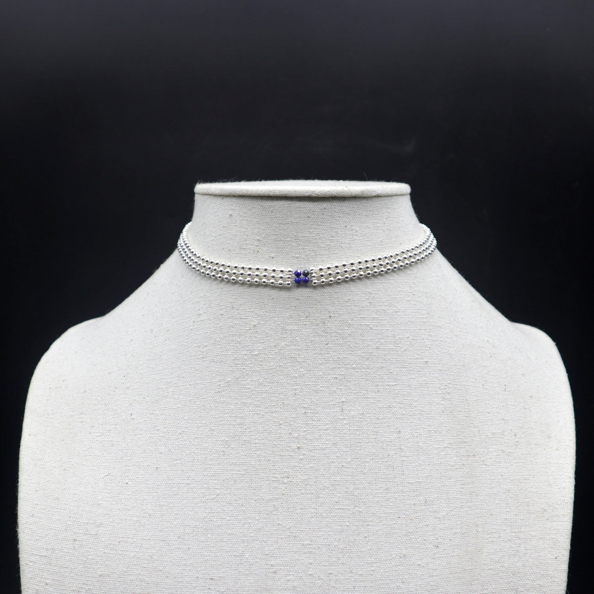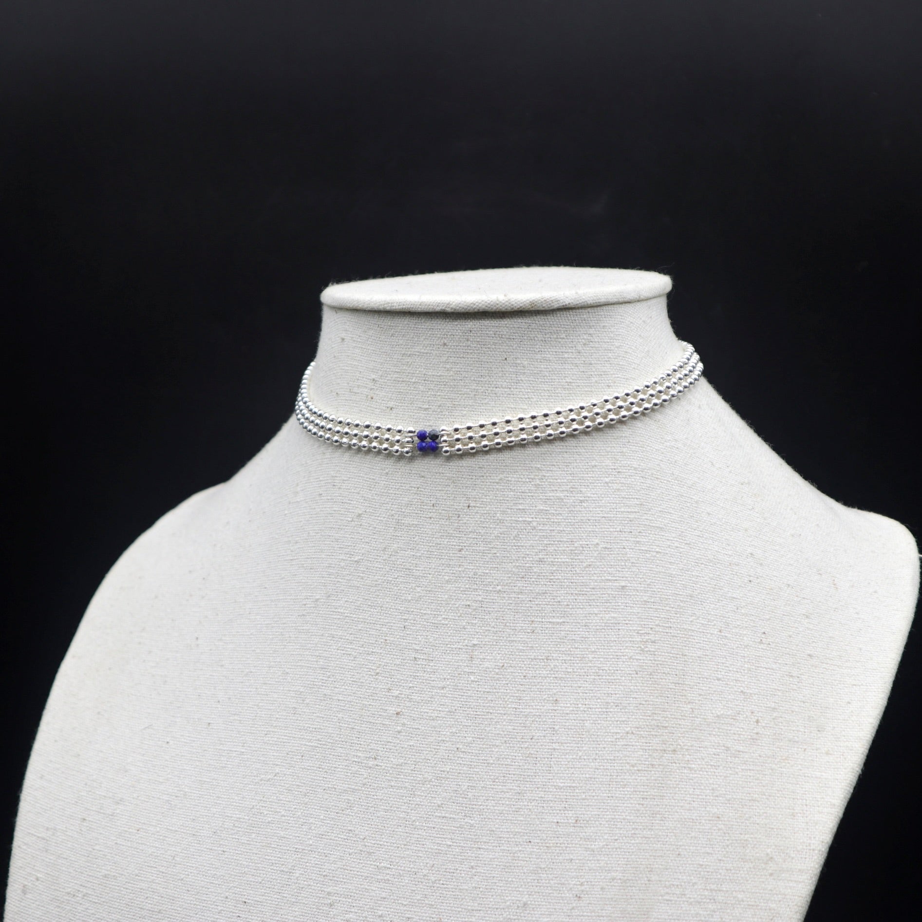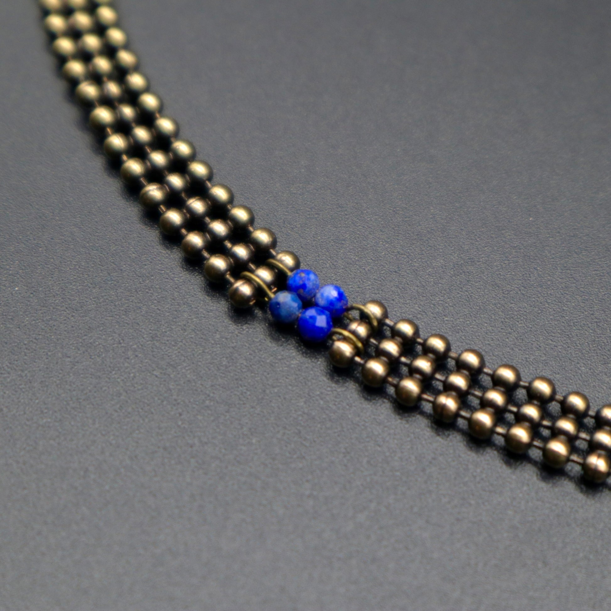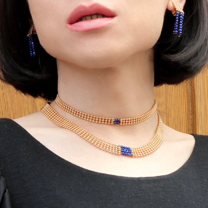Les perles facettées en lapis-lazuli naturel de grade A brillent au centre du collier.
