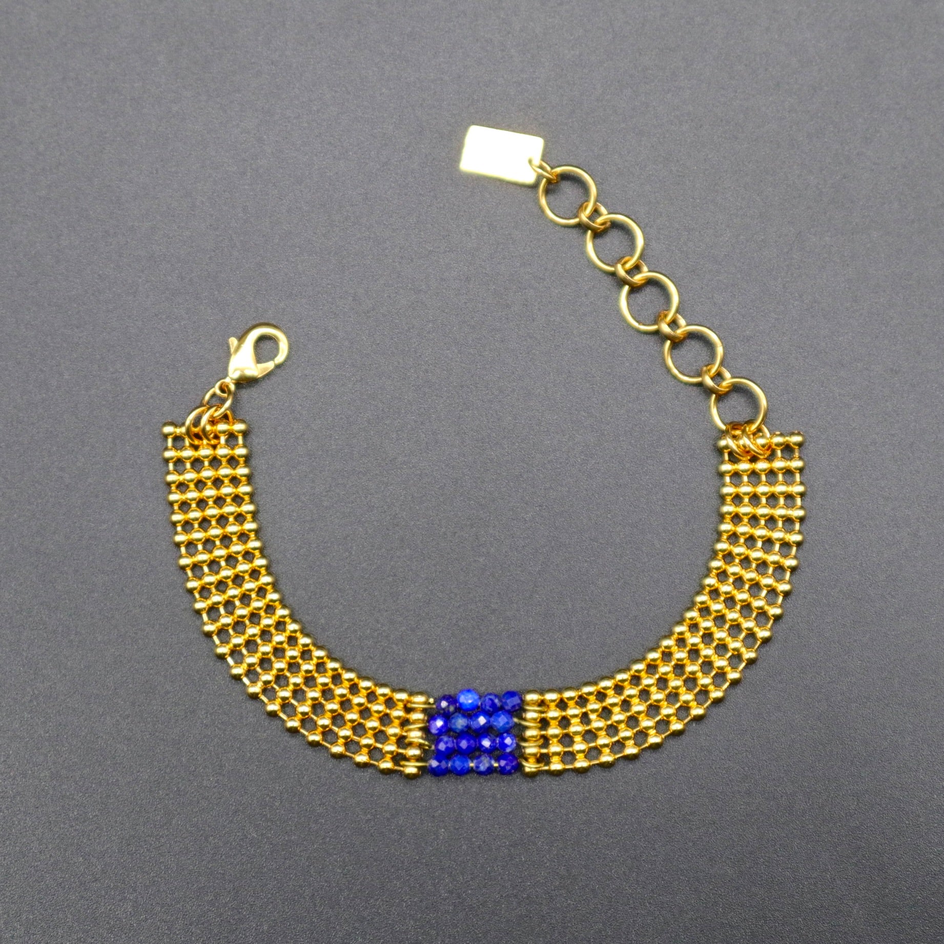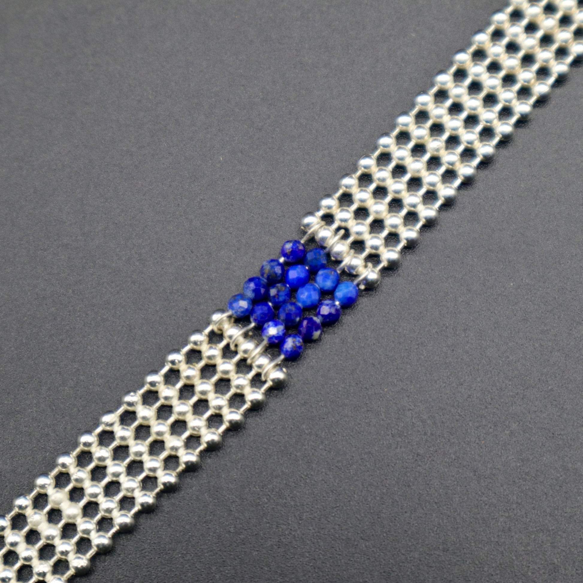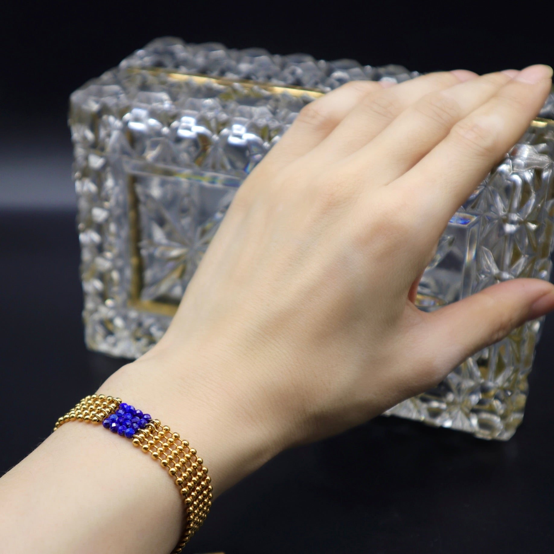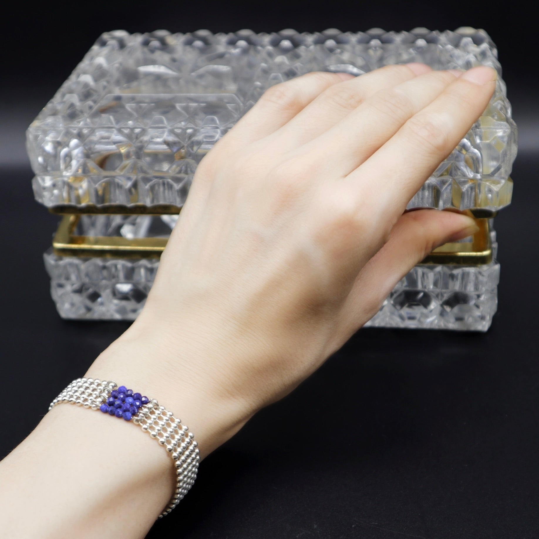 Bien qu'il ait un design simple, les perles facettées en lapis-lazuli naturel de grade A au centre qui brillent donnent l'allure à ce bracelet.