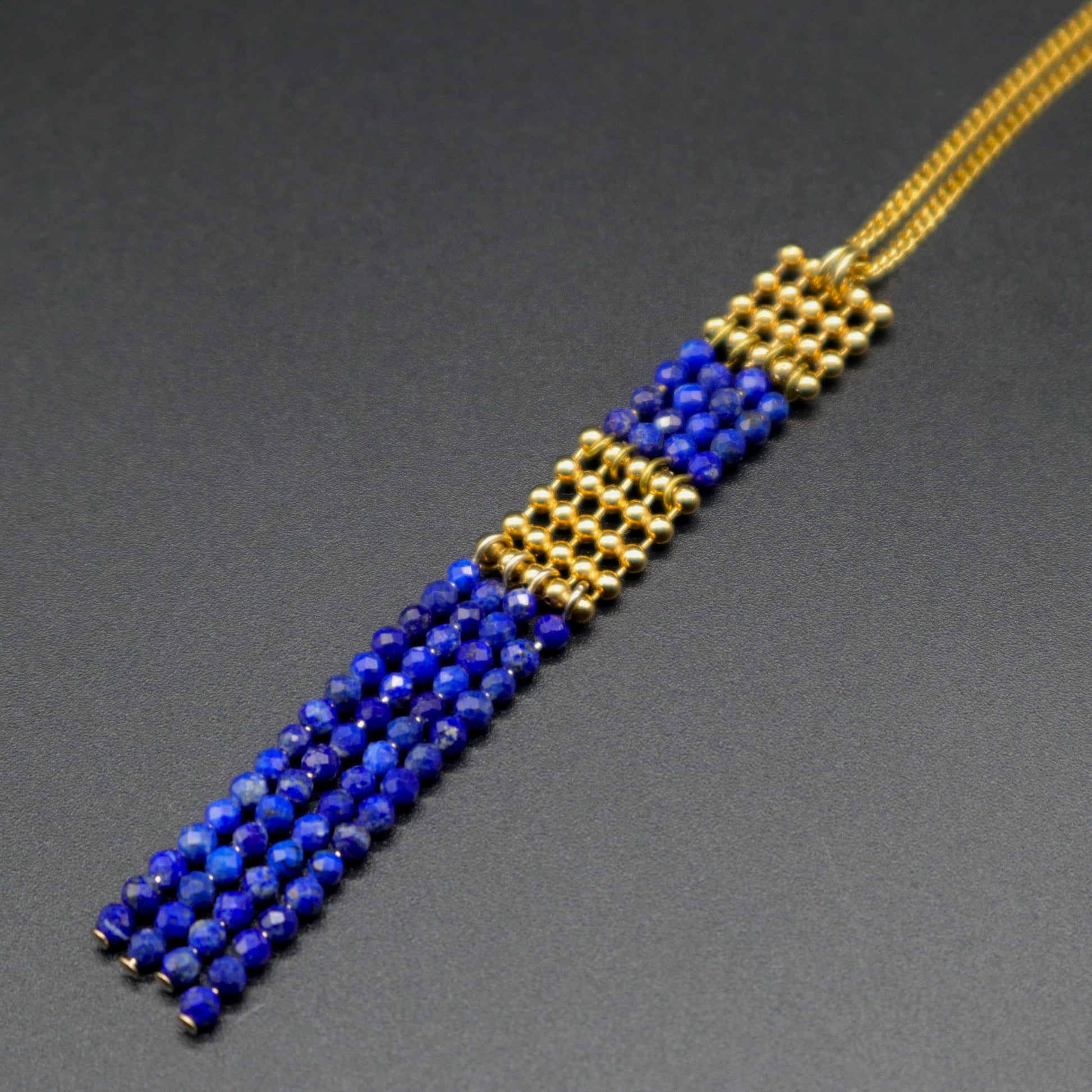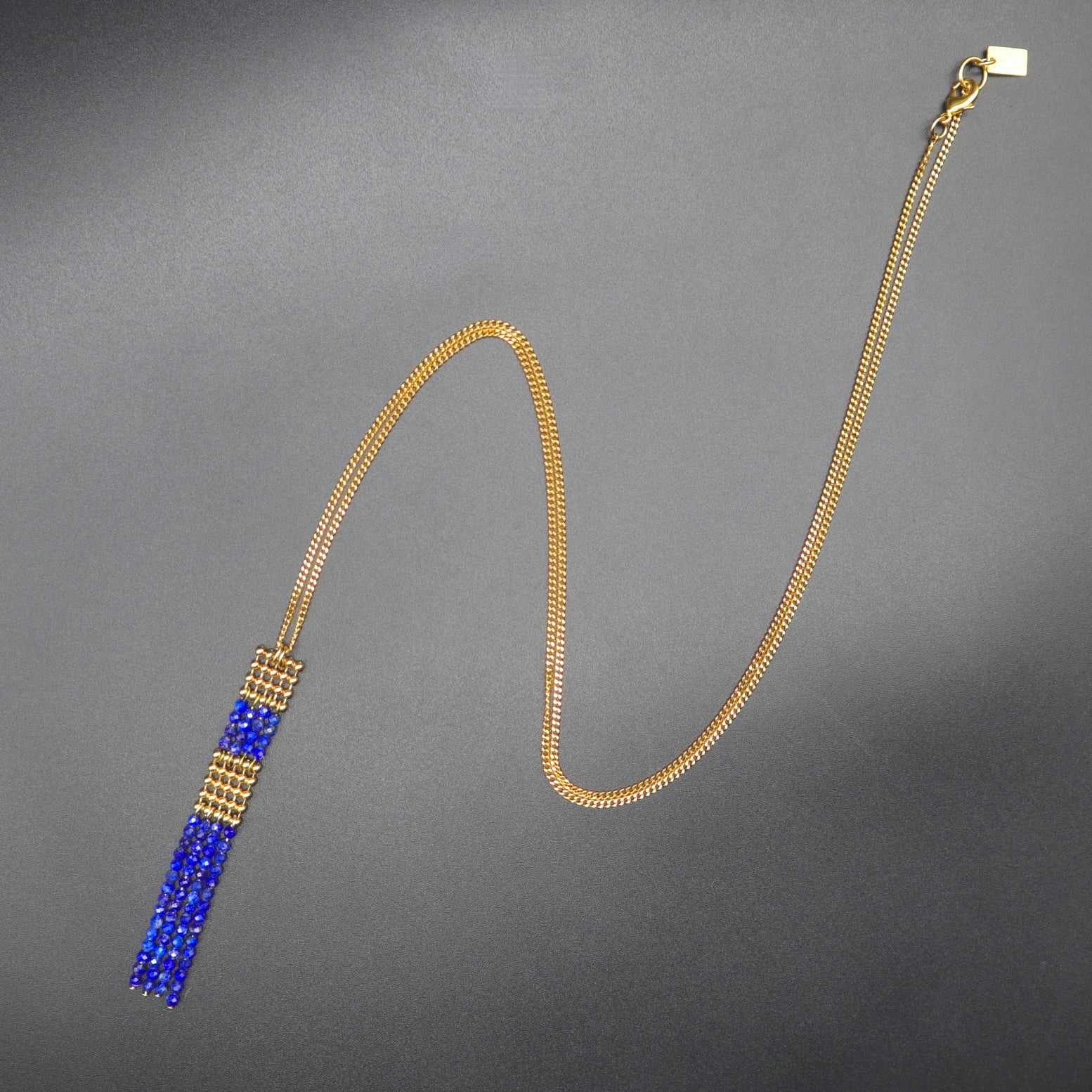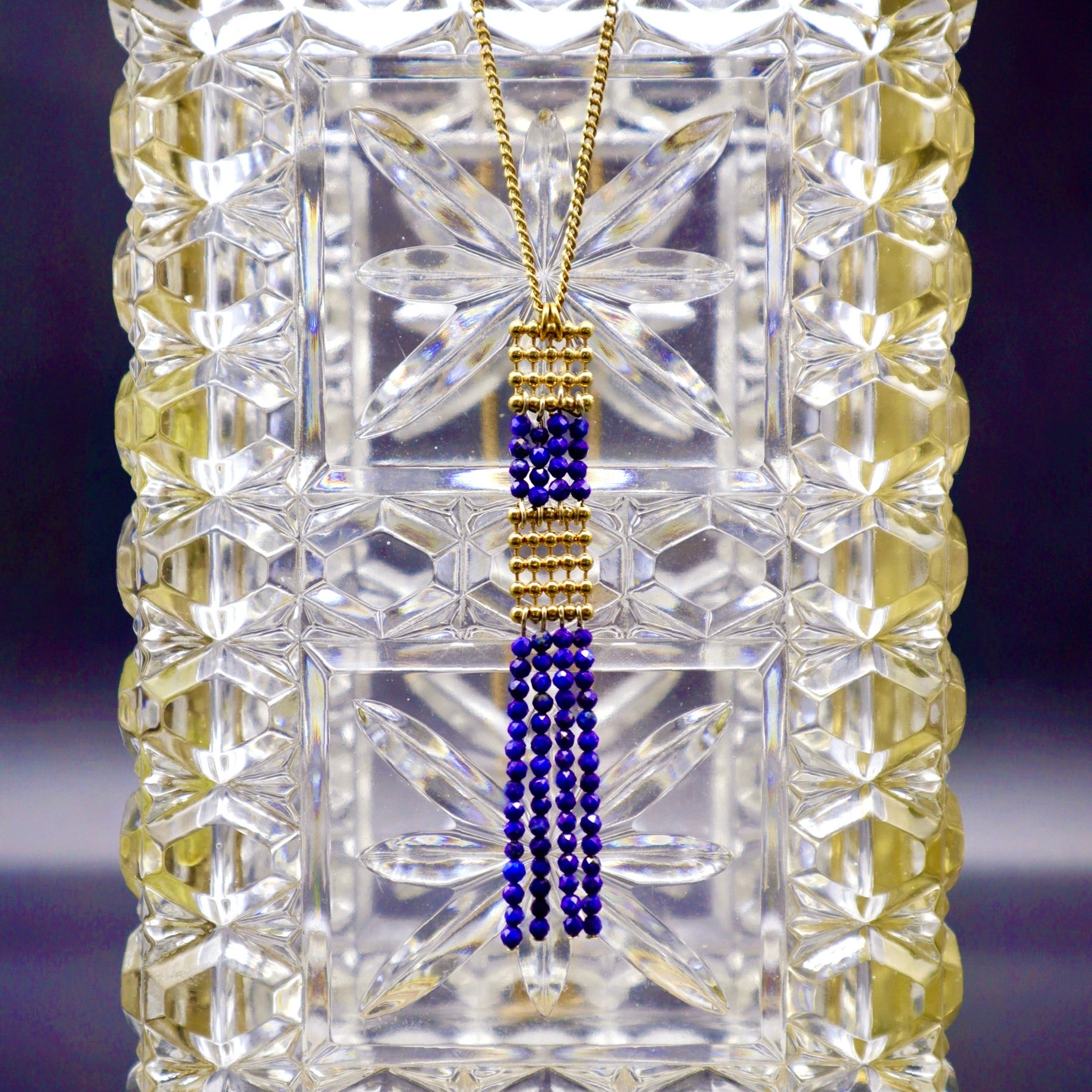 Les franges en lapis-lazuli naturel de grade A scintillent à chaque mouvement.