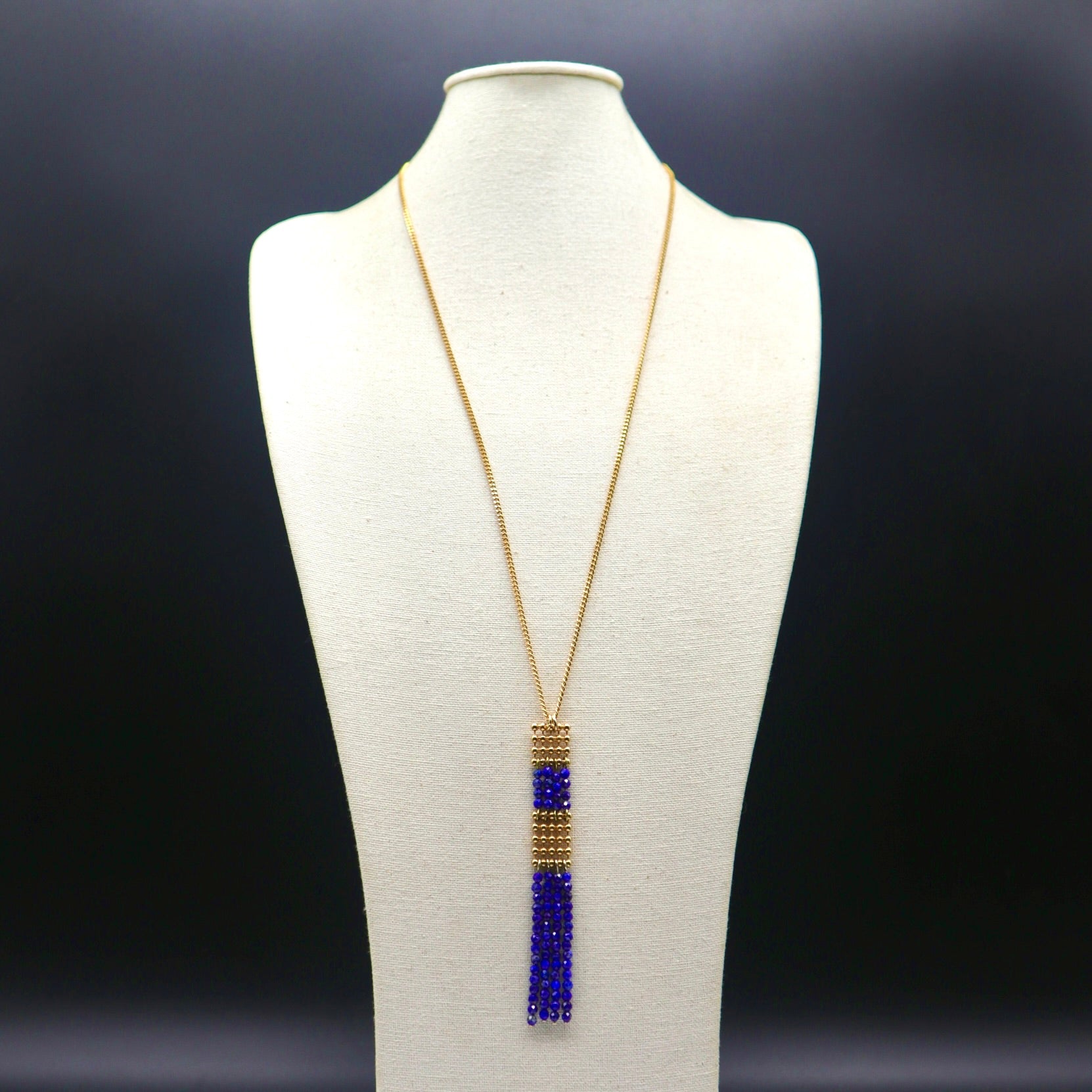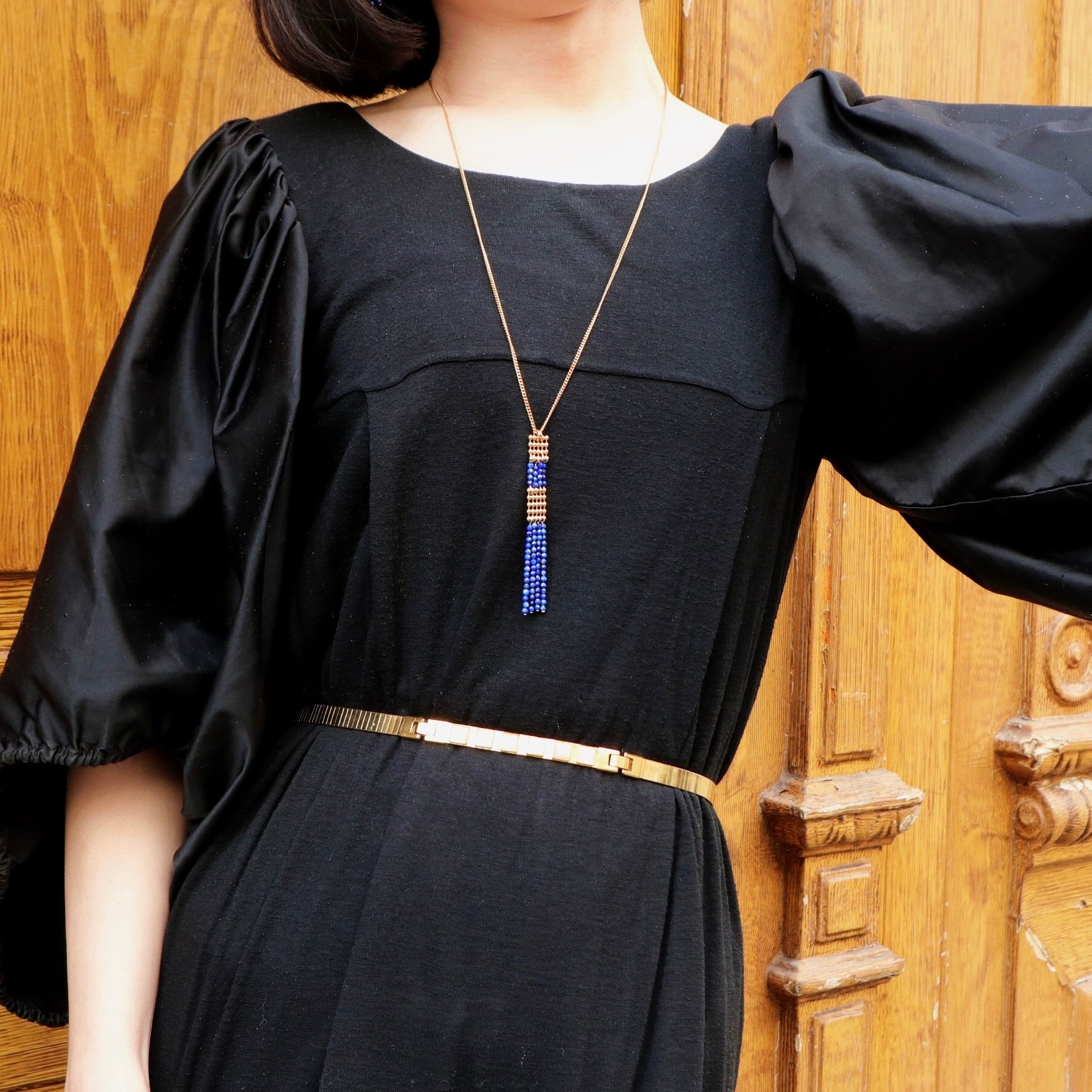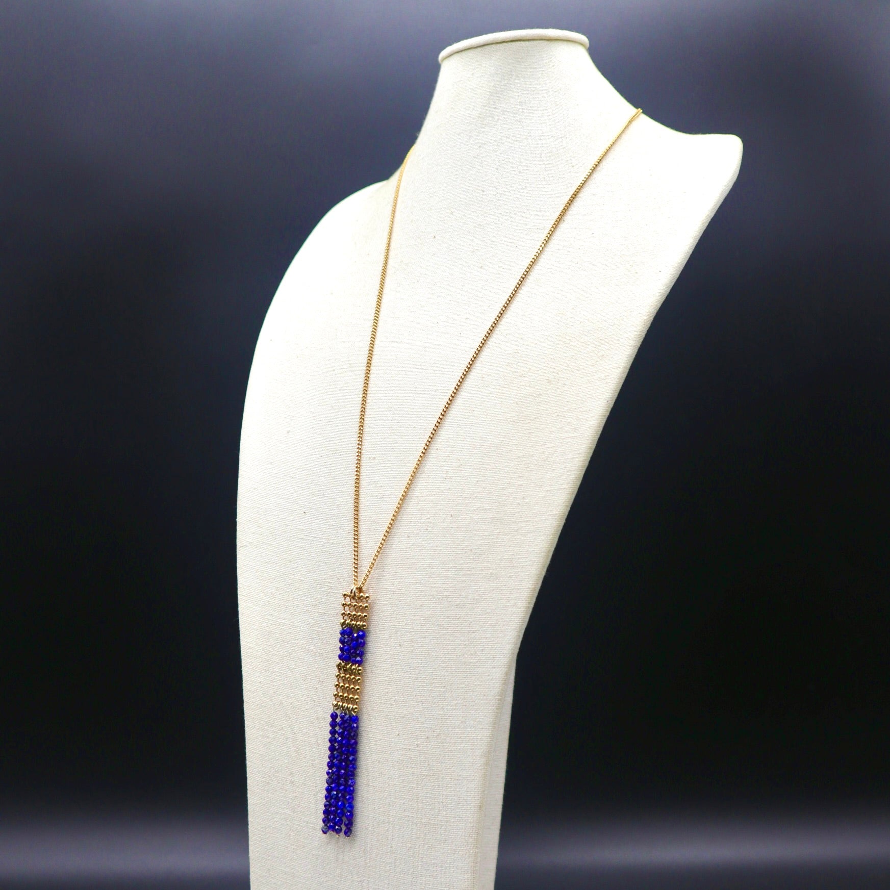 Les franges en lapis-lazuli naturel de grade A scintillent à chaque mouvement.