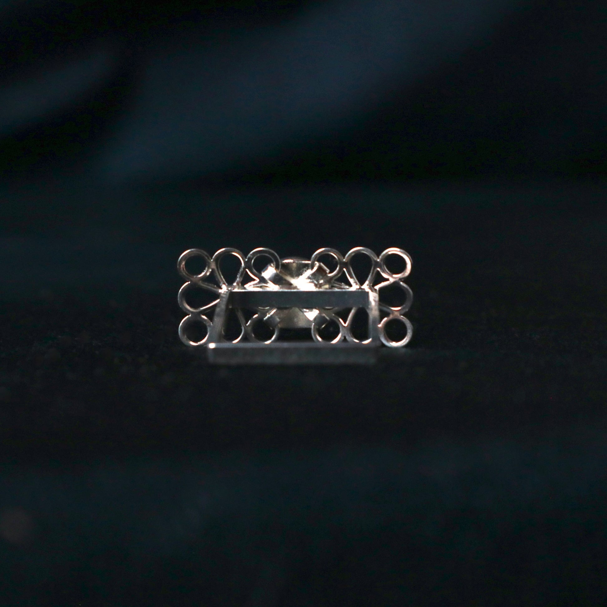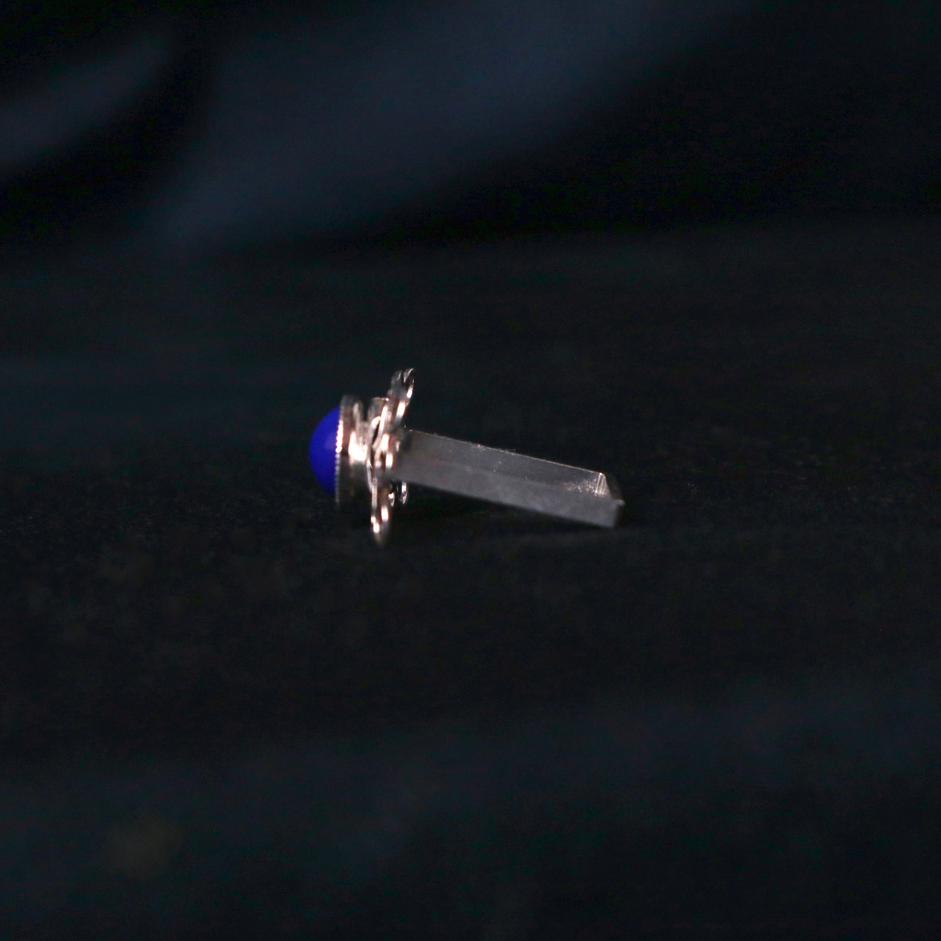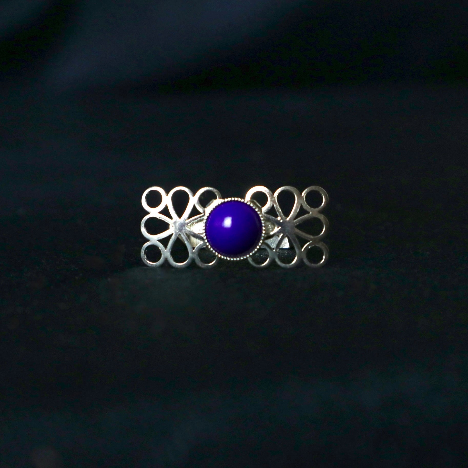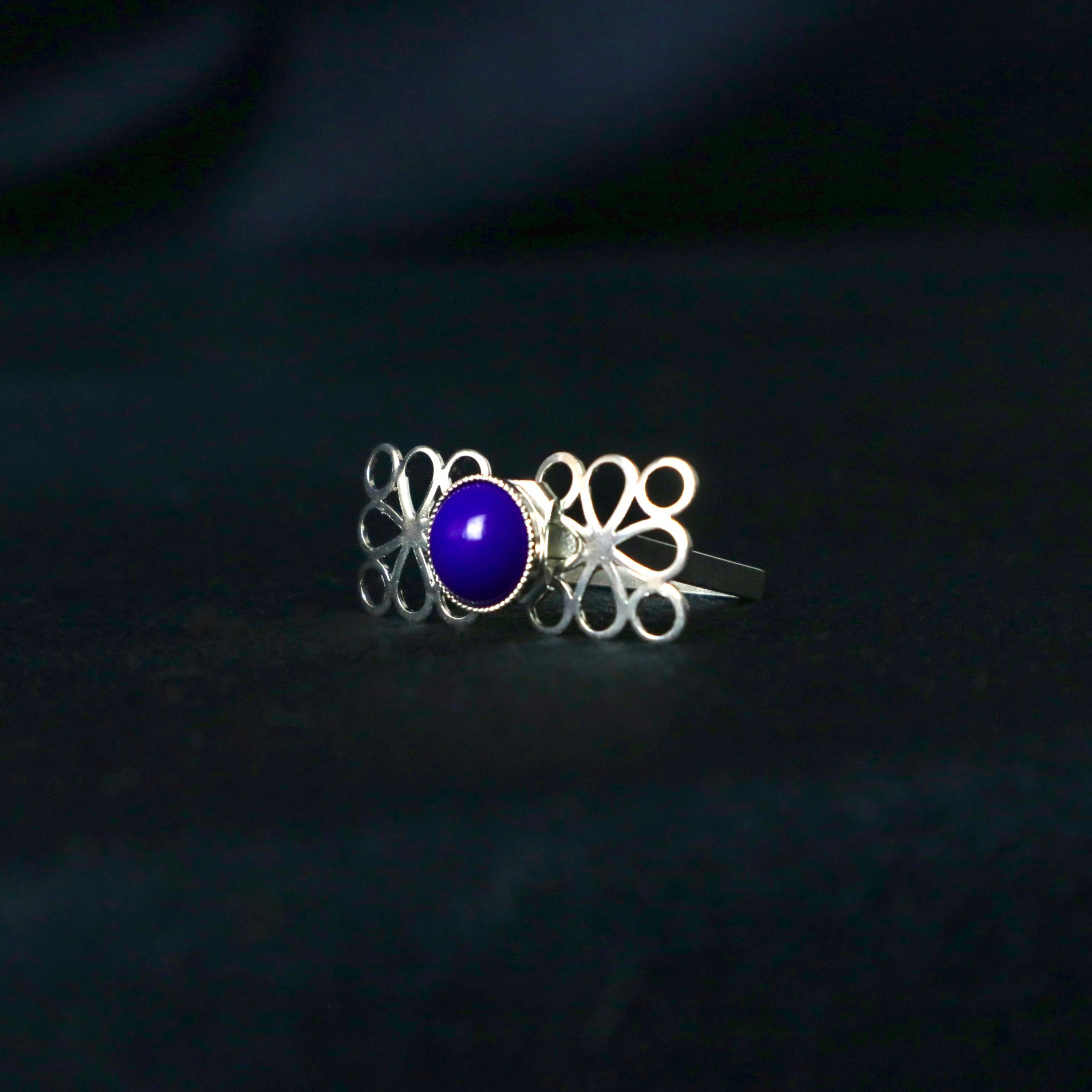 Le cabochon bleu marine rappelant le lapis lazuli est du Swarovski vintage.