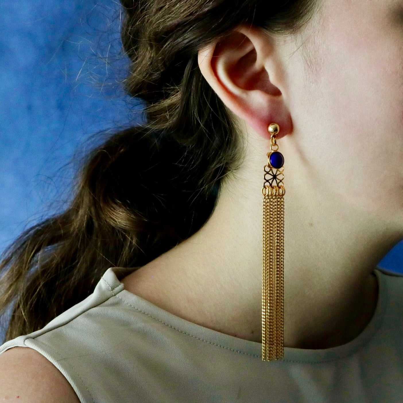[Gustave Moreau - Cléopâtre] Boucles d'oreilles Percées à Franges super longues