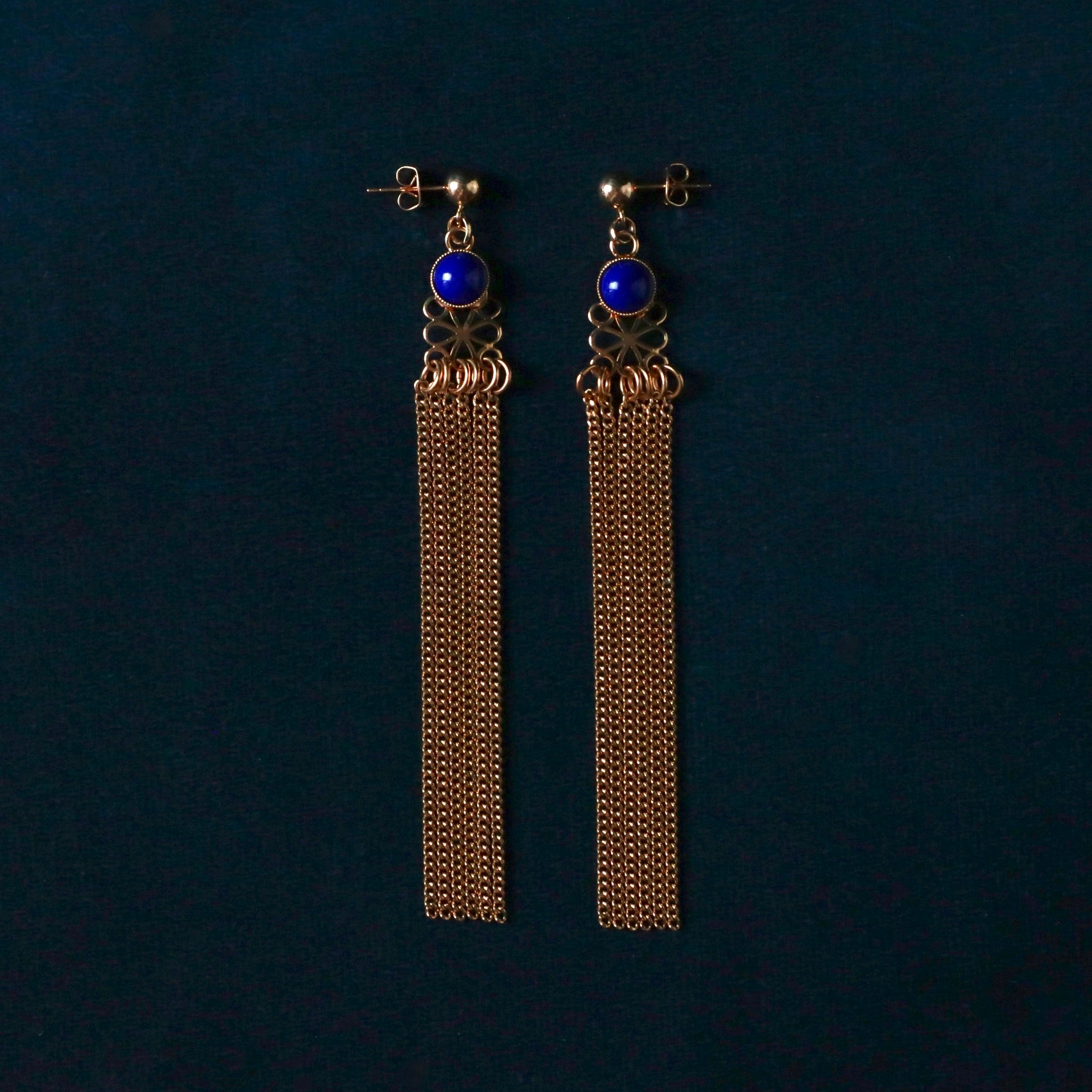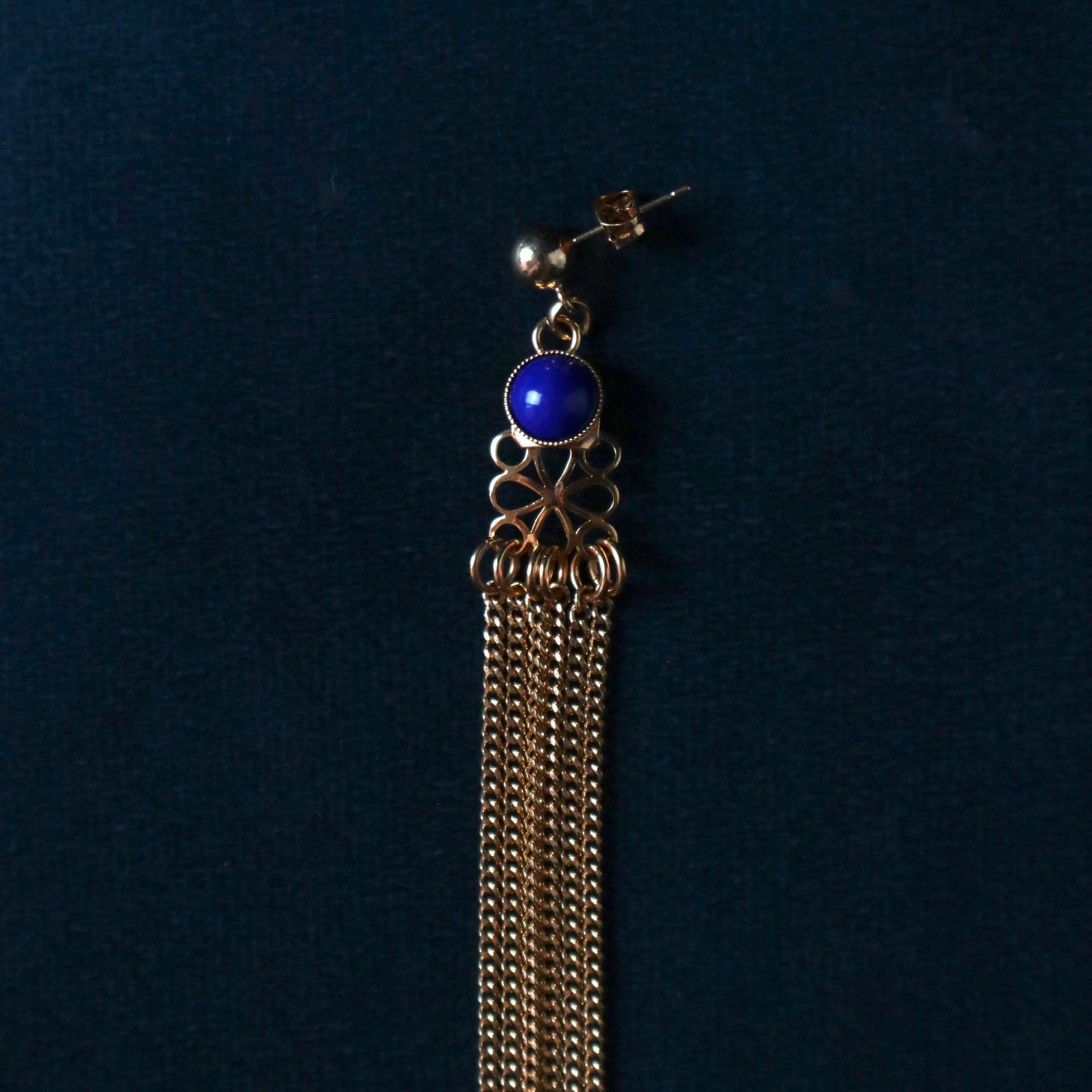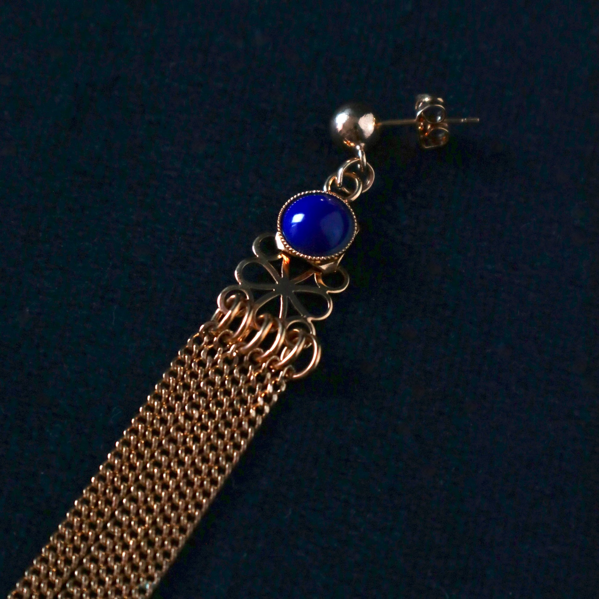 Le cabochon bleu marine rappelant le lapis lazuli est du Swarovski vintage.