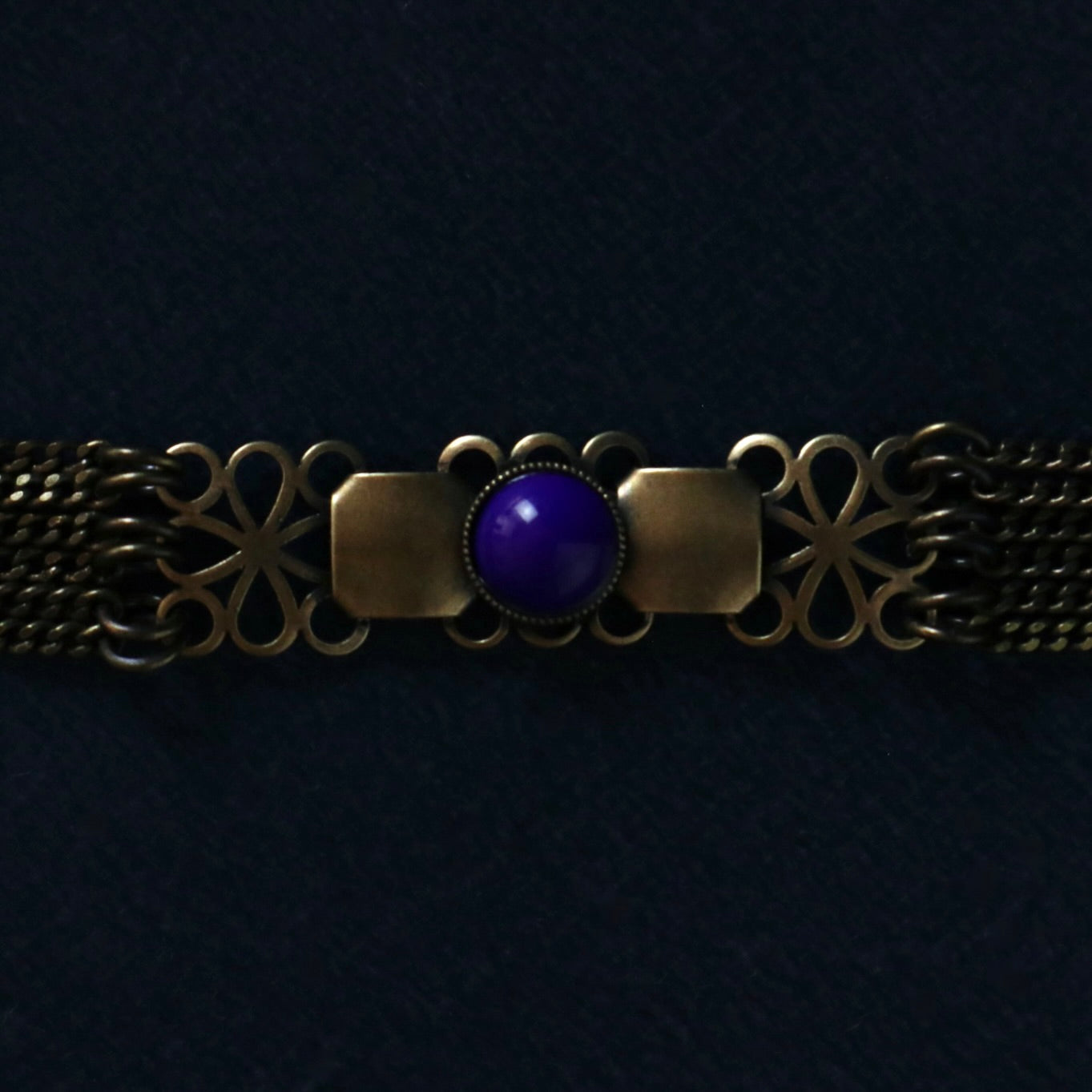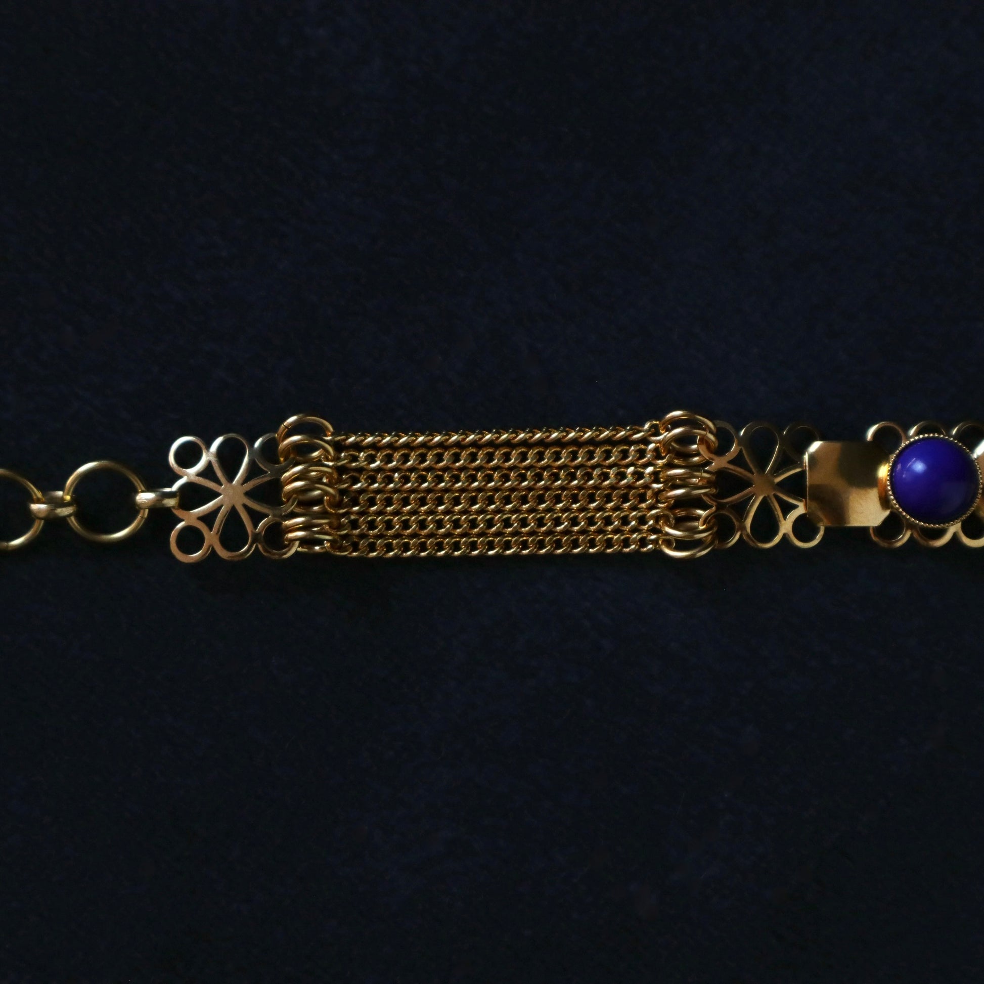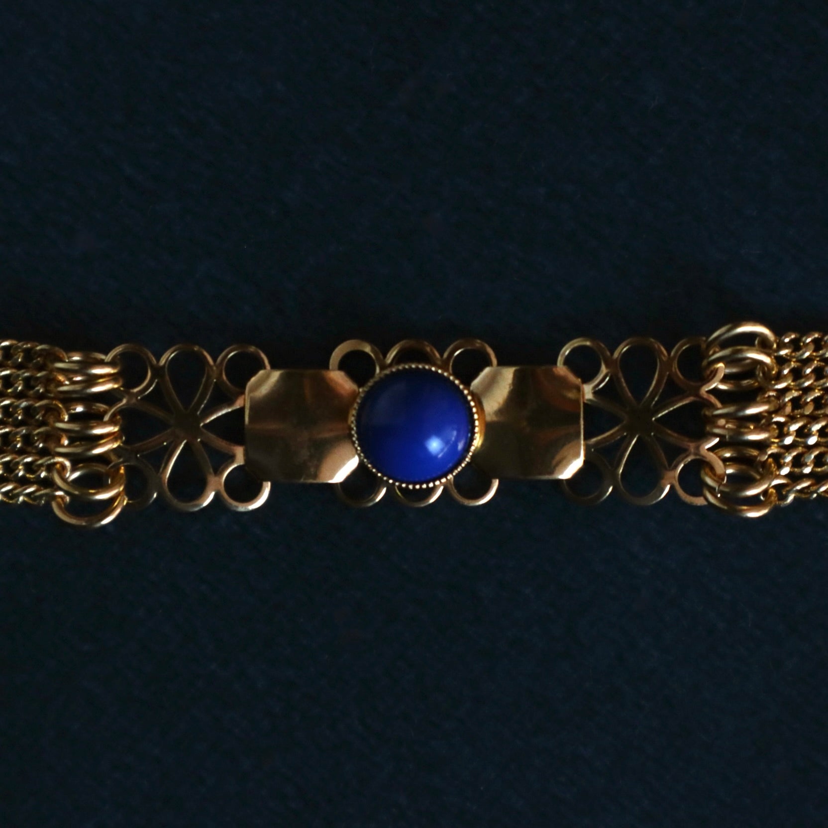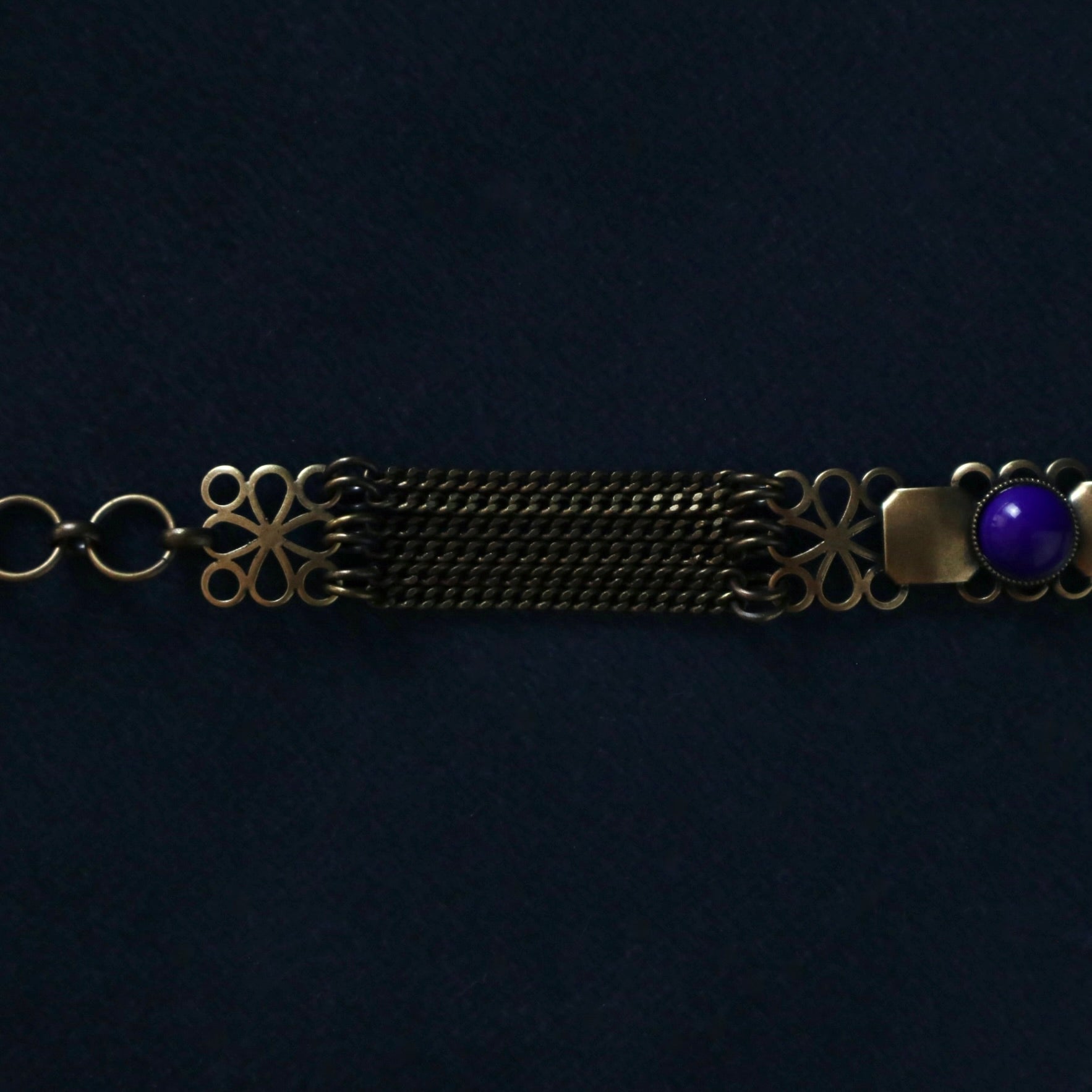 Un bracelet orné d'un cabochon bleu marine.