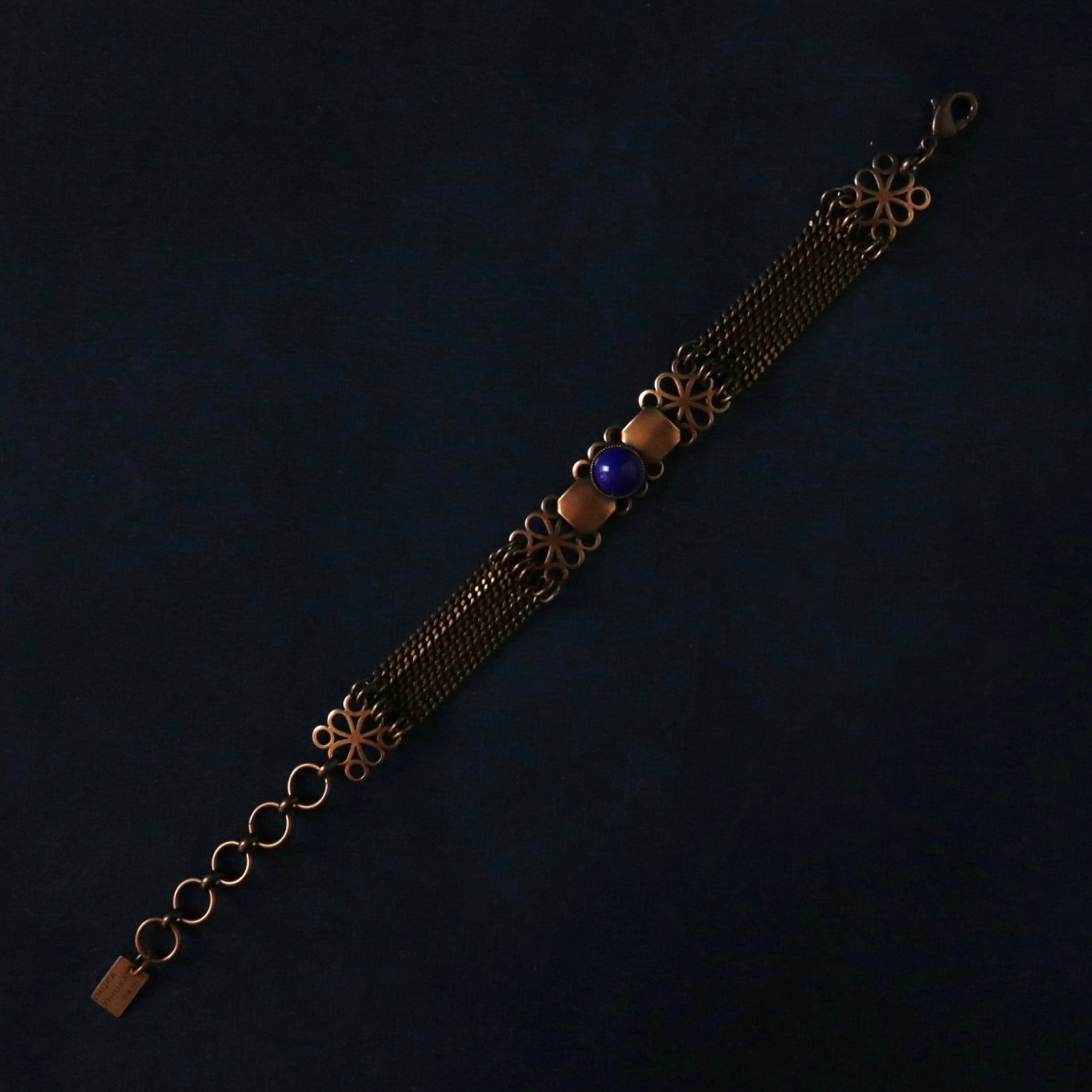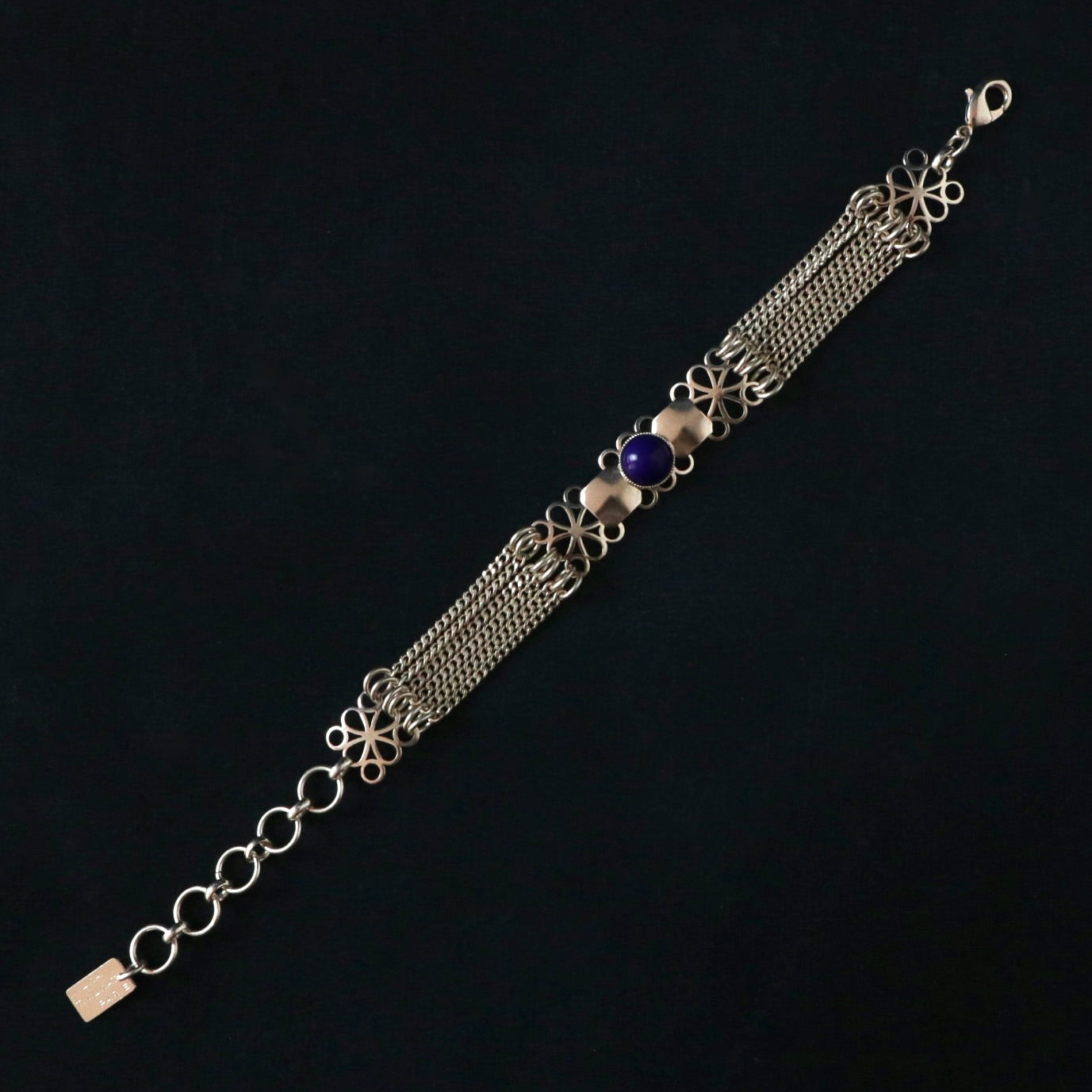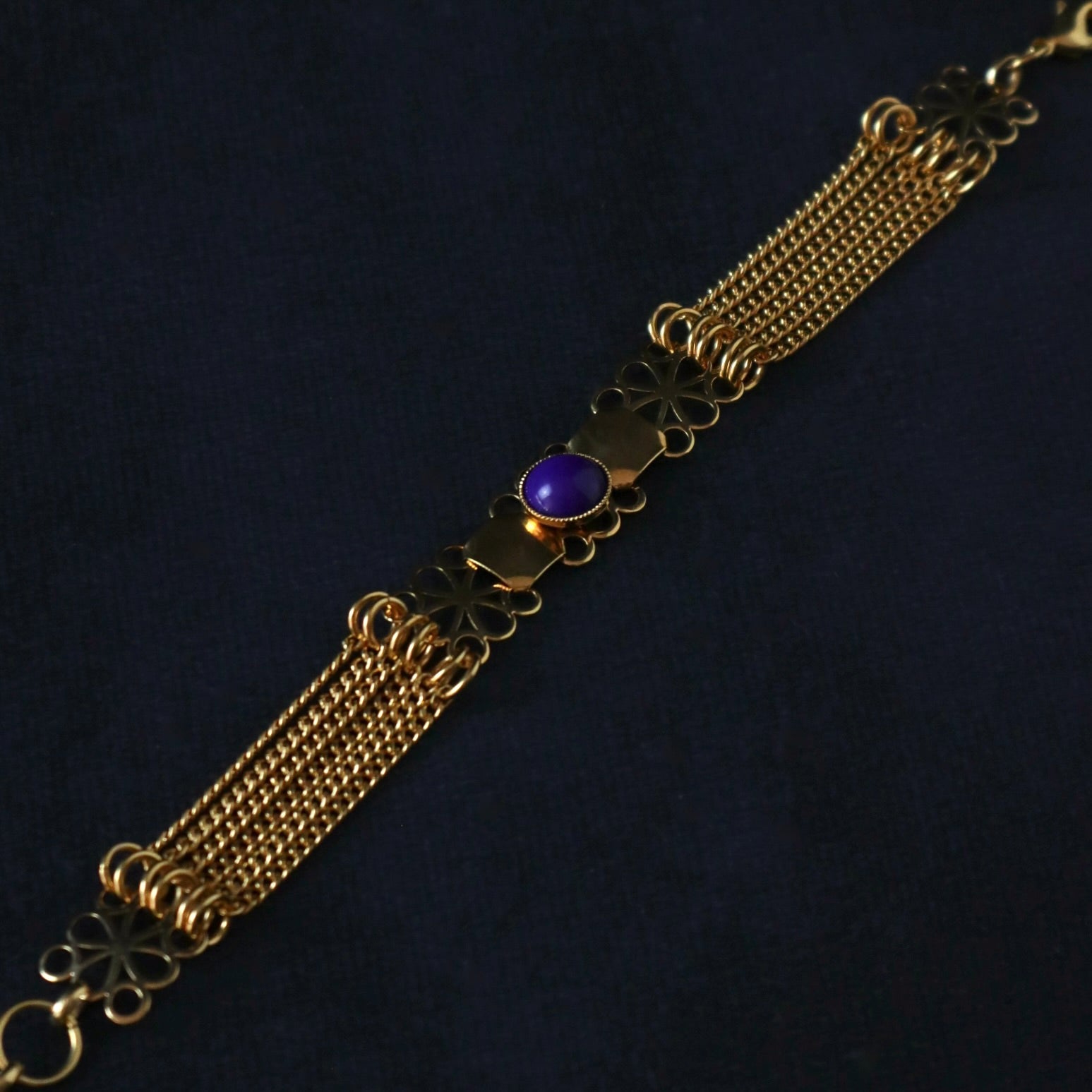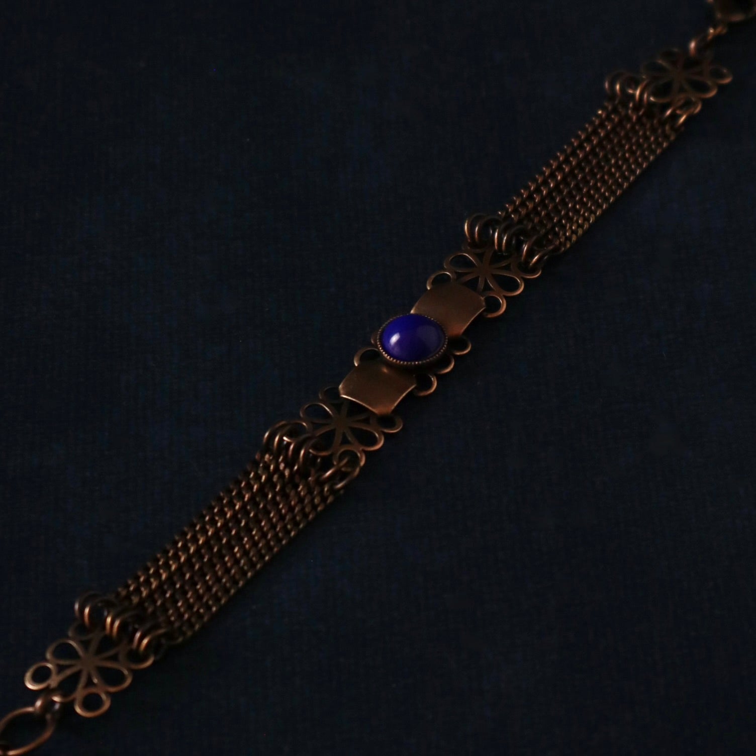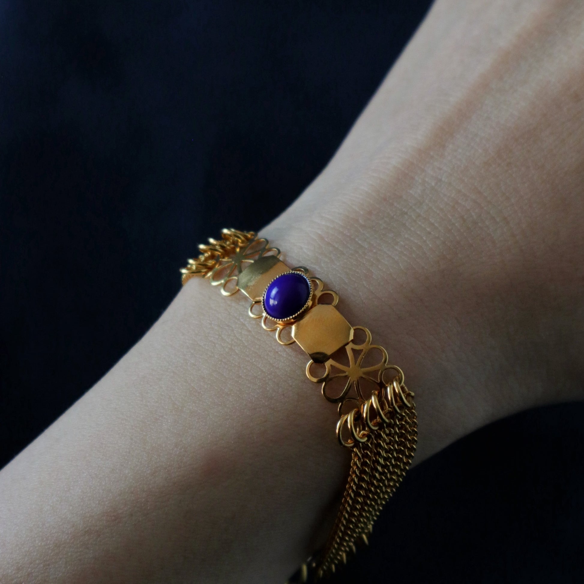 Un bracelet orné d'un cabochon bleu marine.