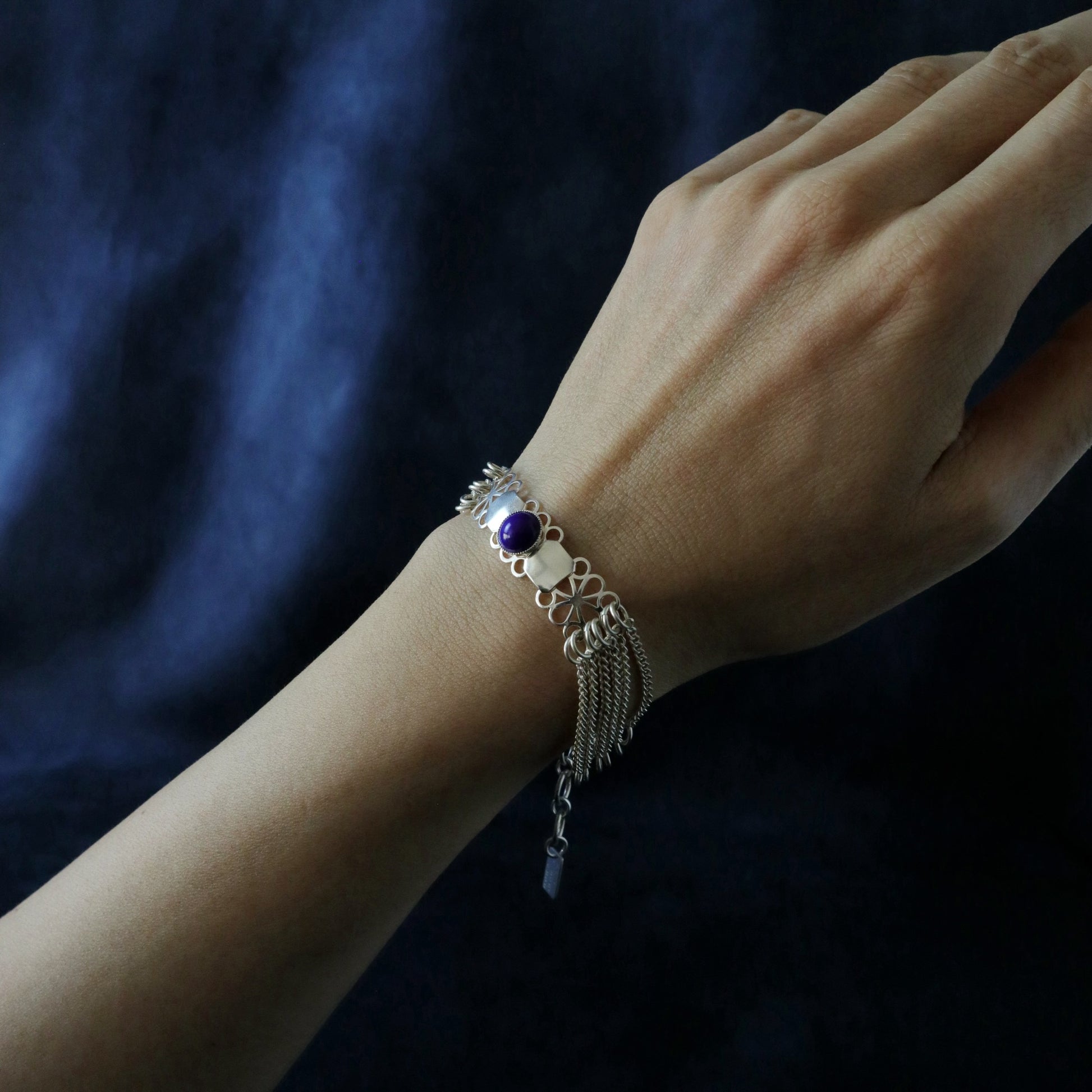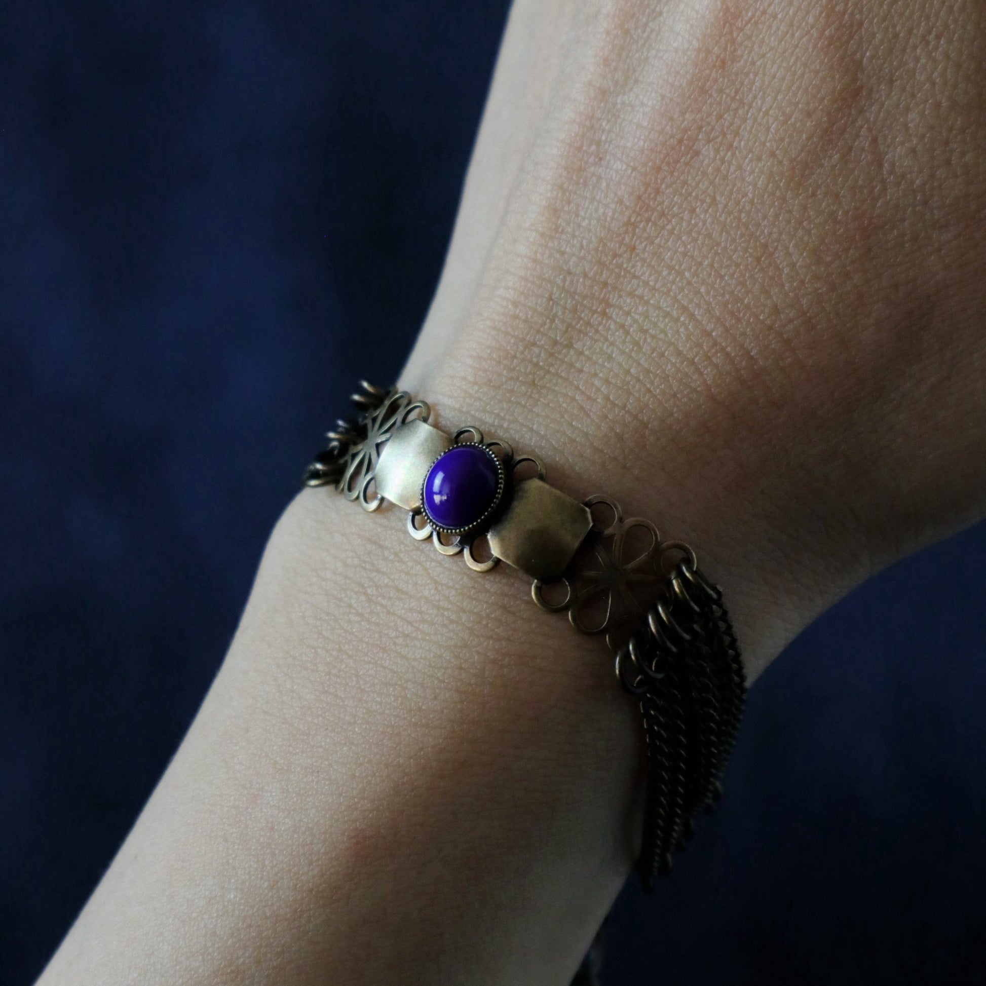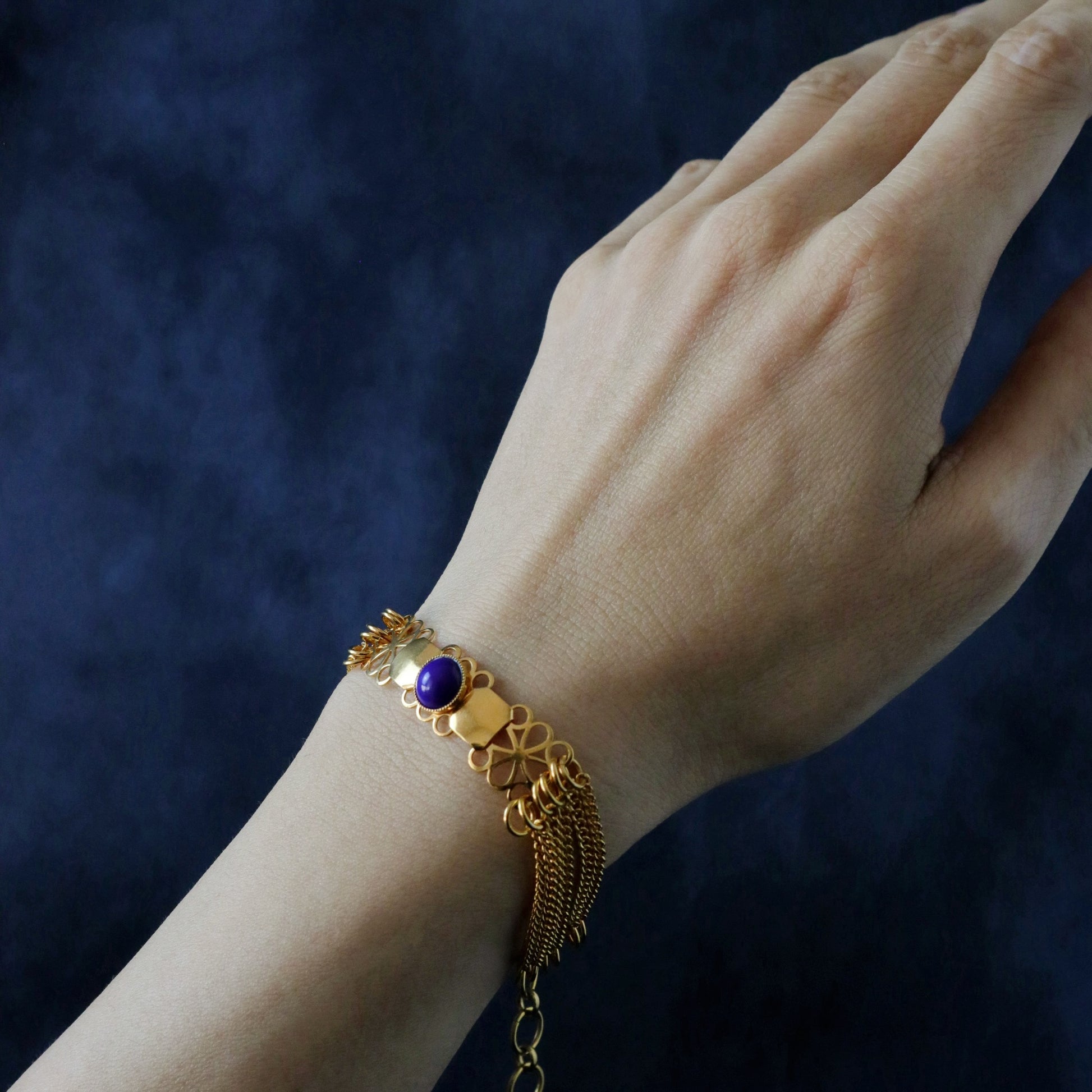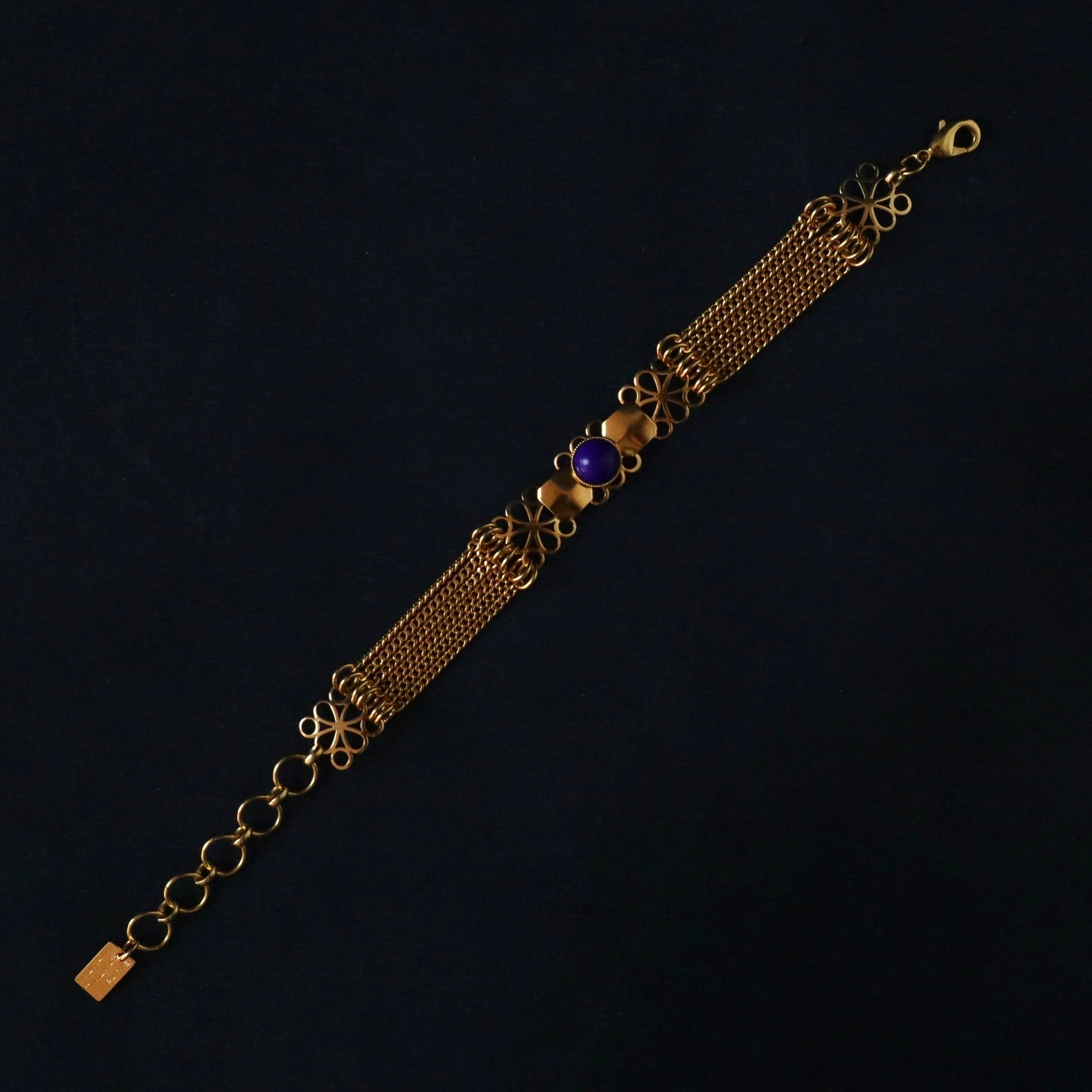Un bracelet orné d'un cabochon bleu marine.