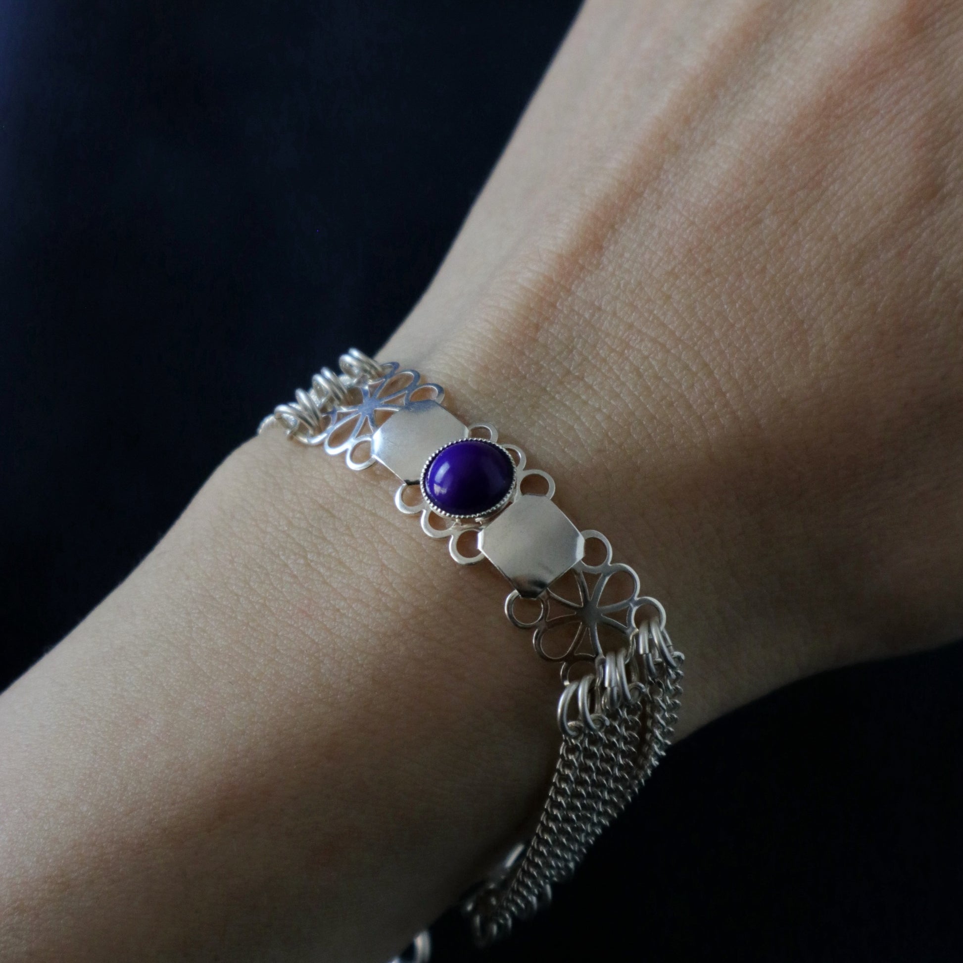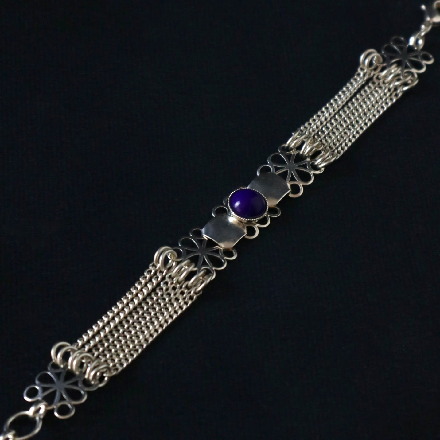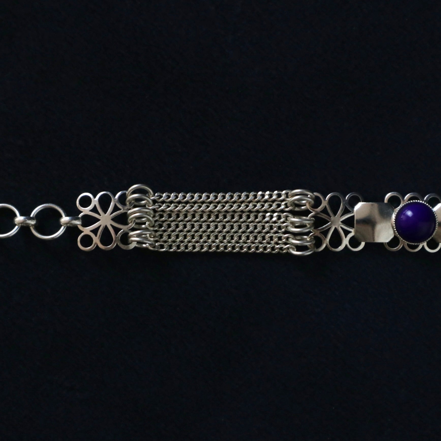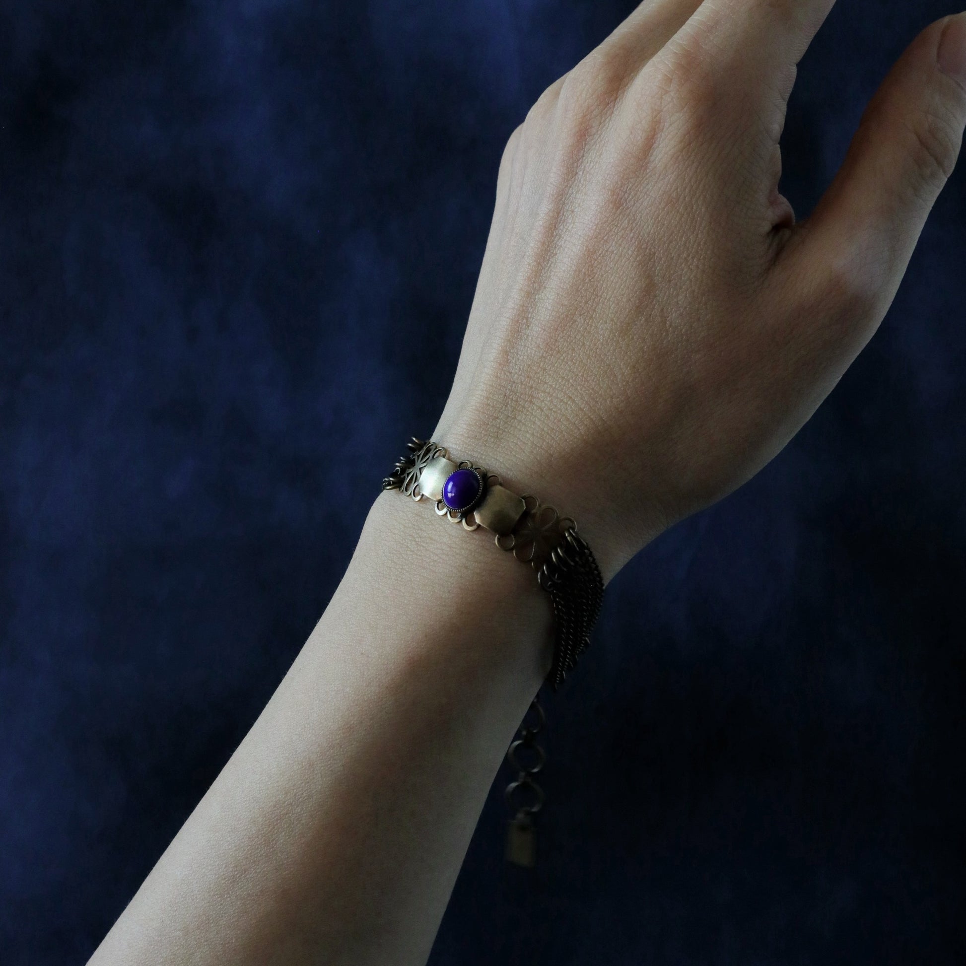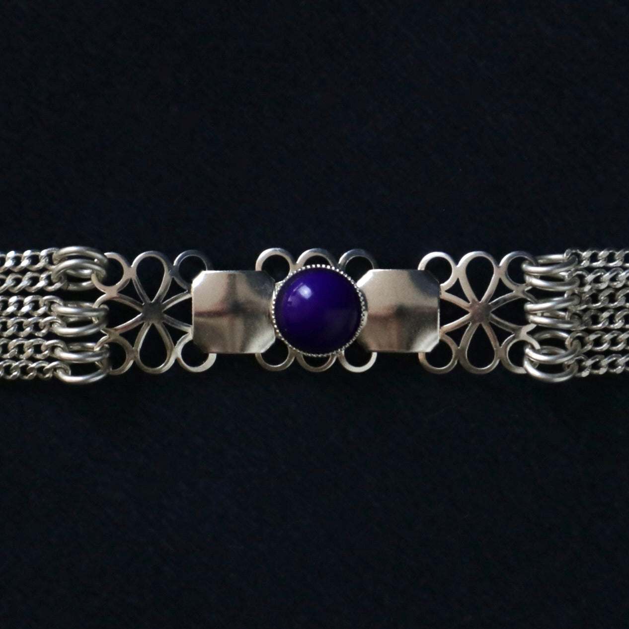 Un bracelet orné d'un cabochon bleu marine.