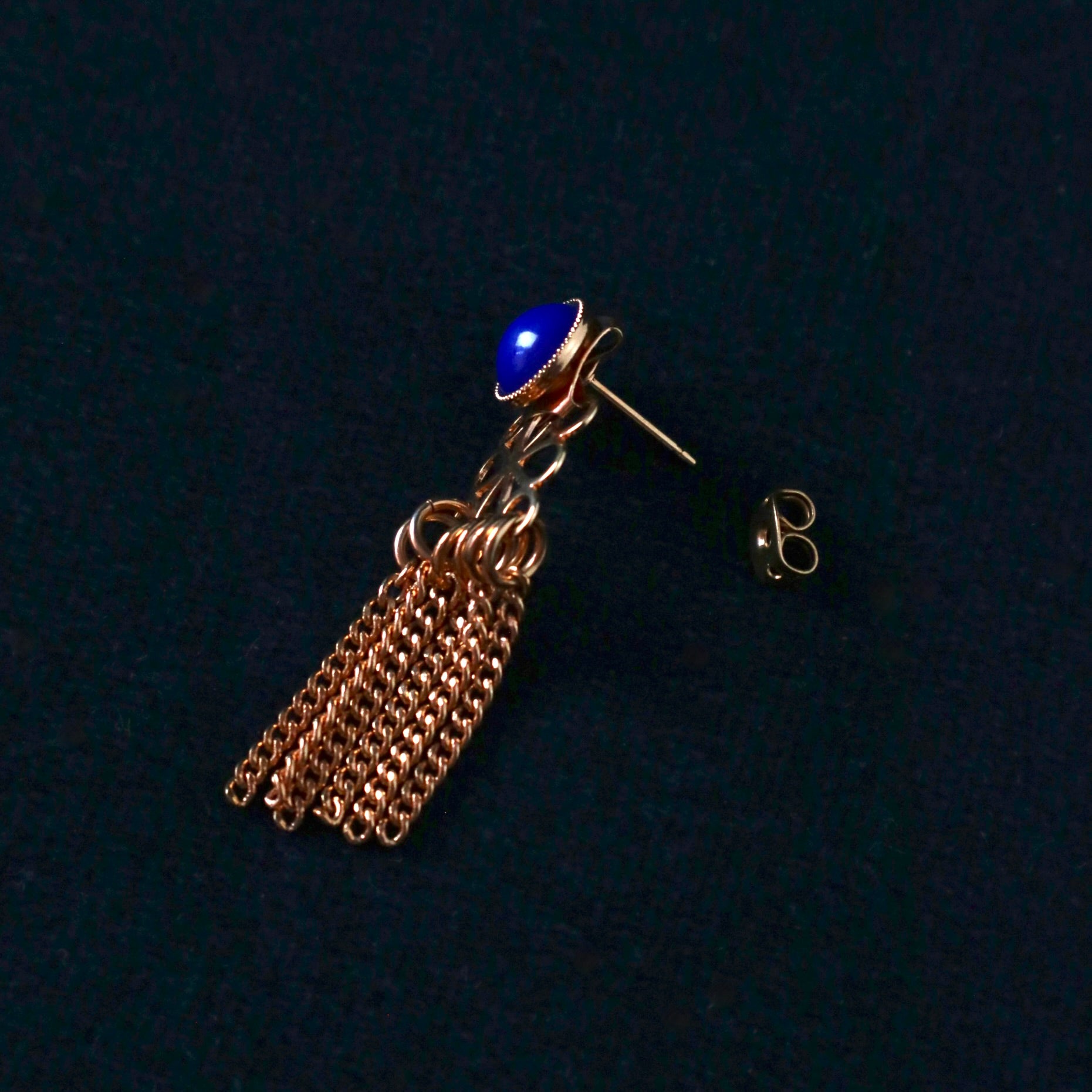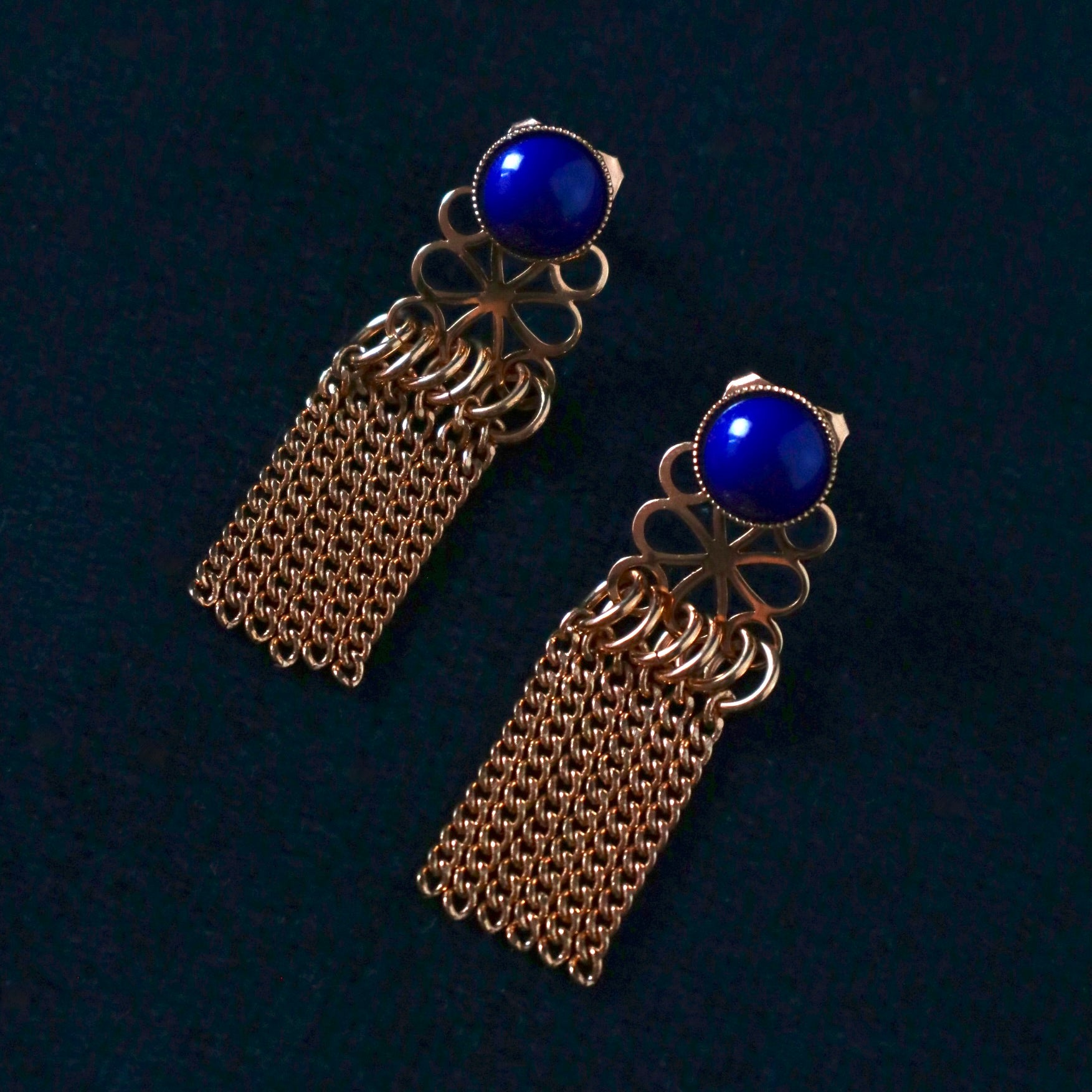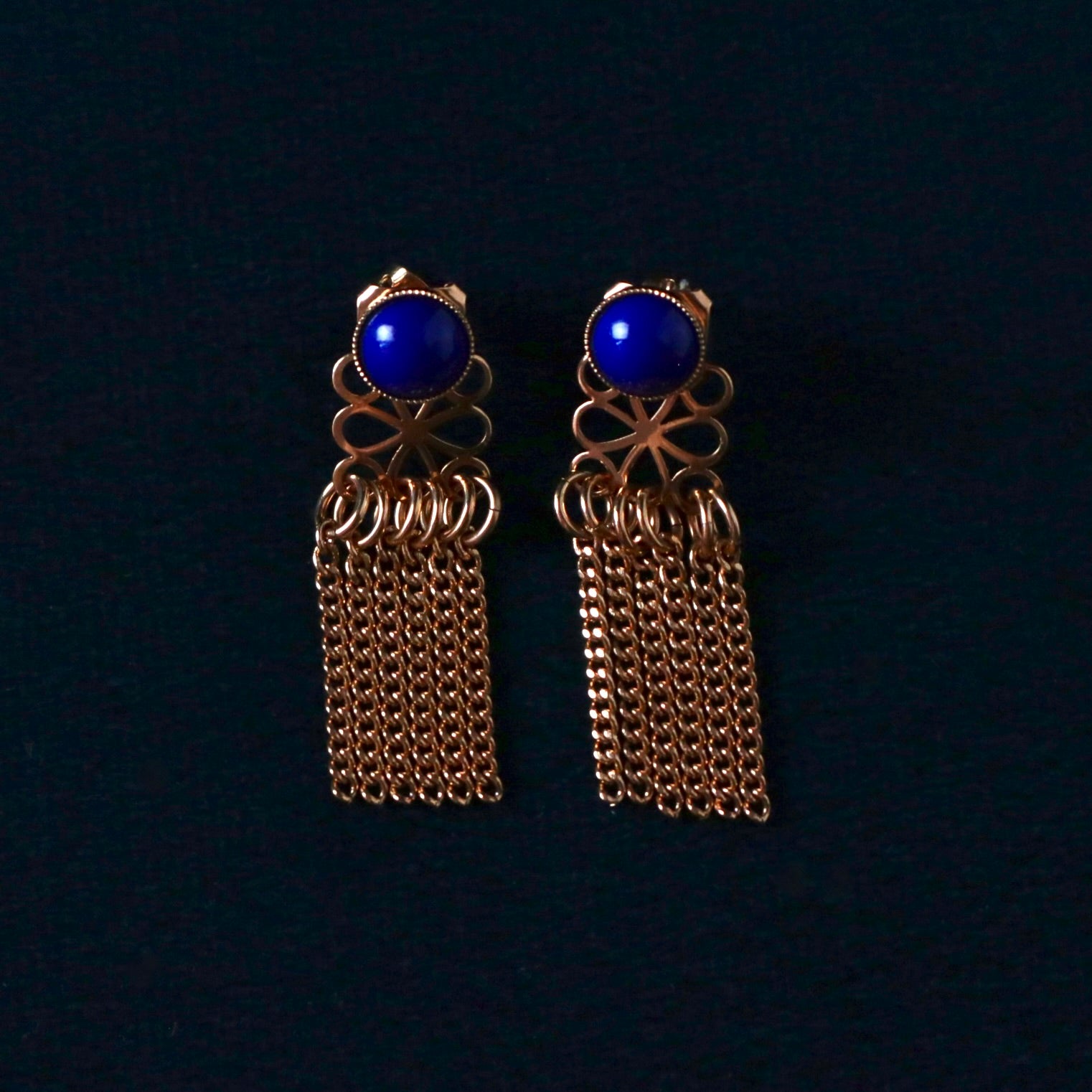 Le cabochon bleu marine rappelant le lapis lazuli est du Swarovski vintage.