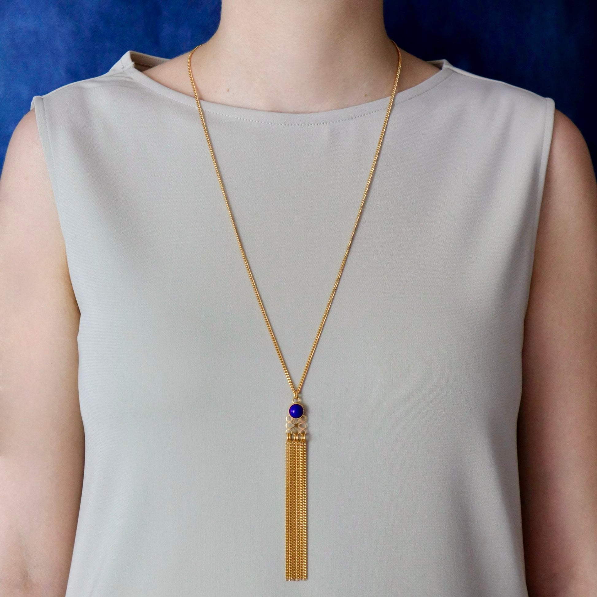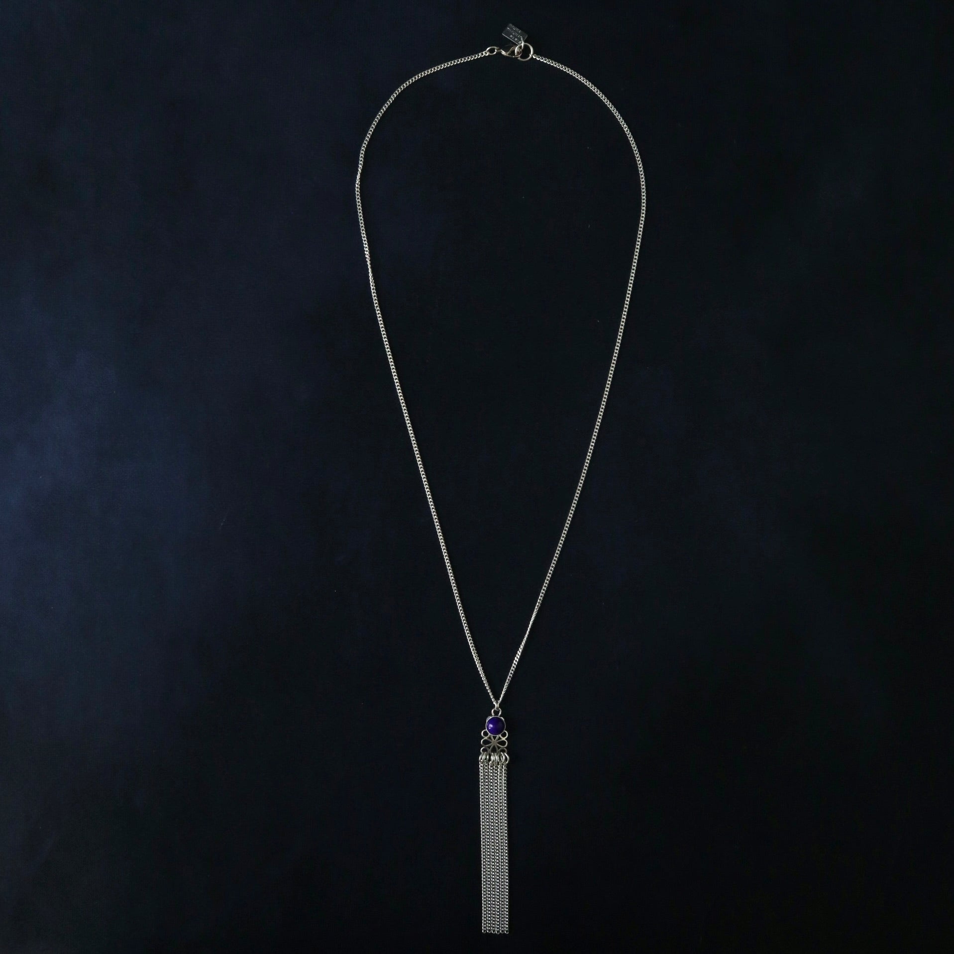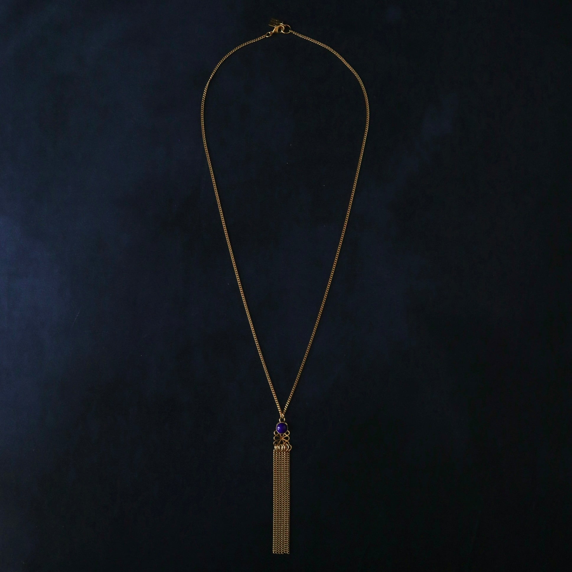 Un sautoir de type pendentif avec une longue frange qui se balance avec élégance et peut être porté pour sortir ou au quotidien.