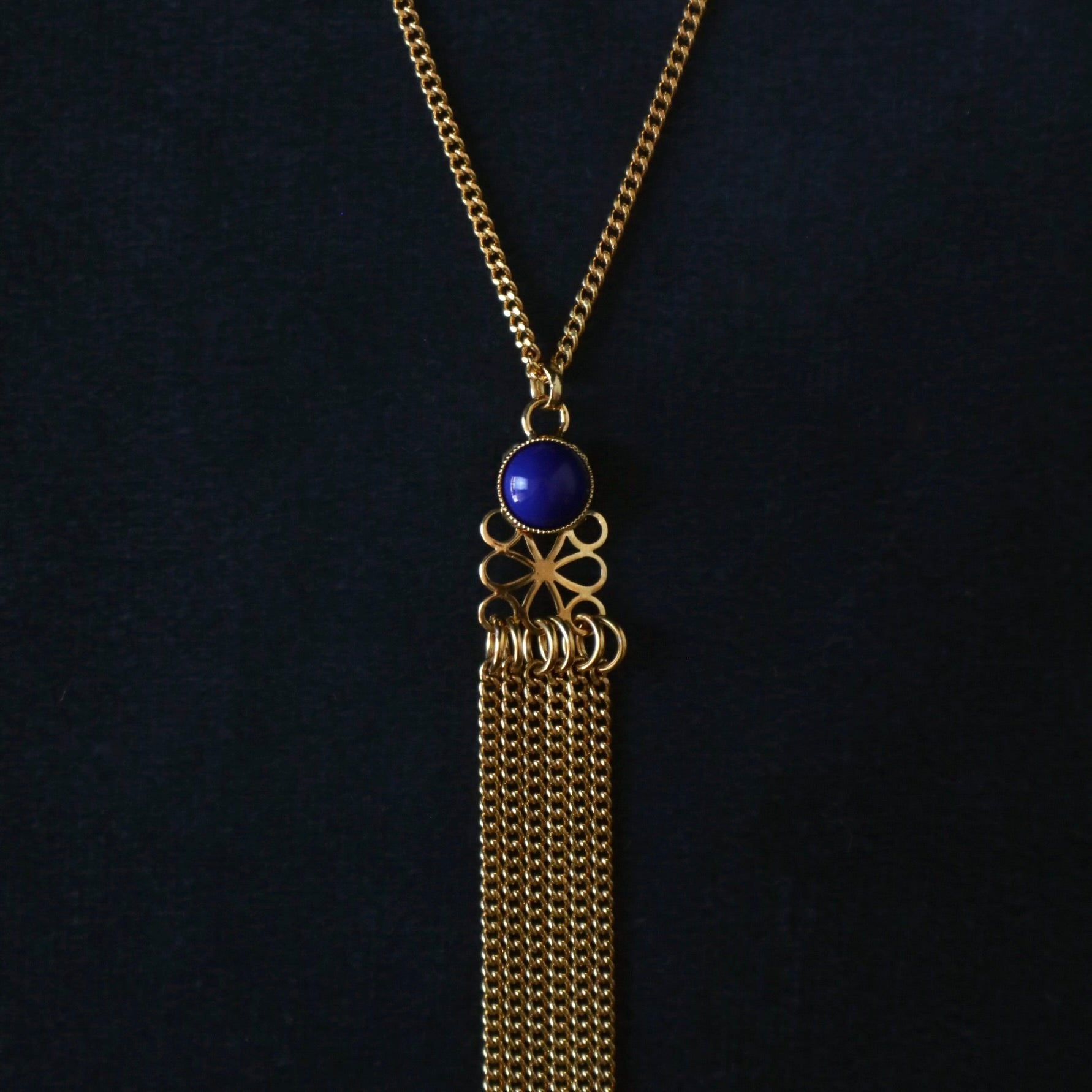 Le cabochon bleu marine rappelant le lapis lazuli est du Swarovski vintage.