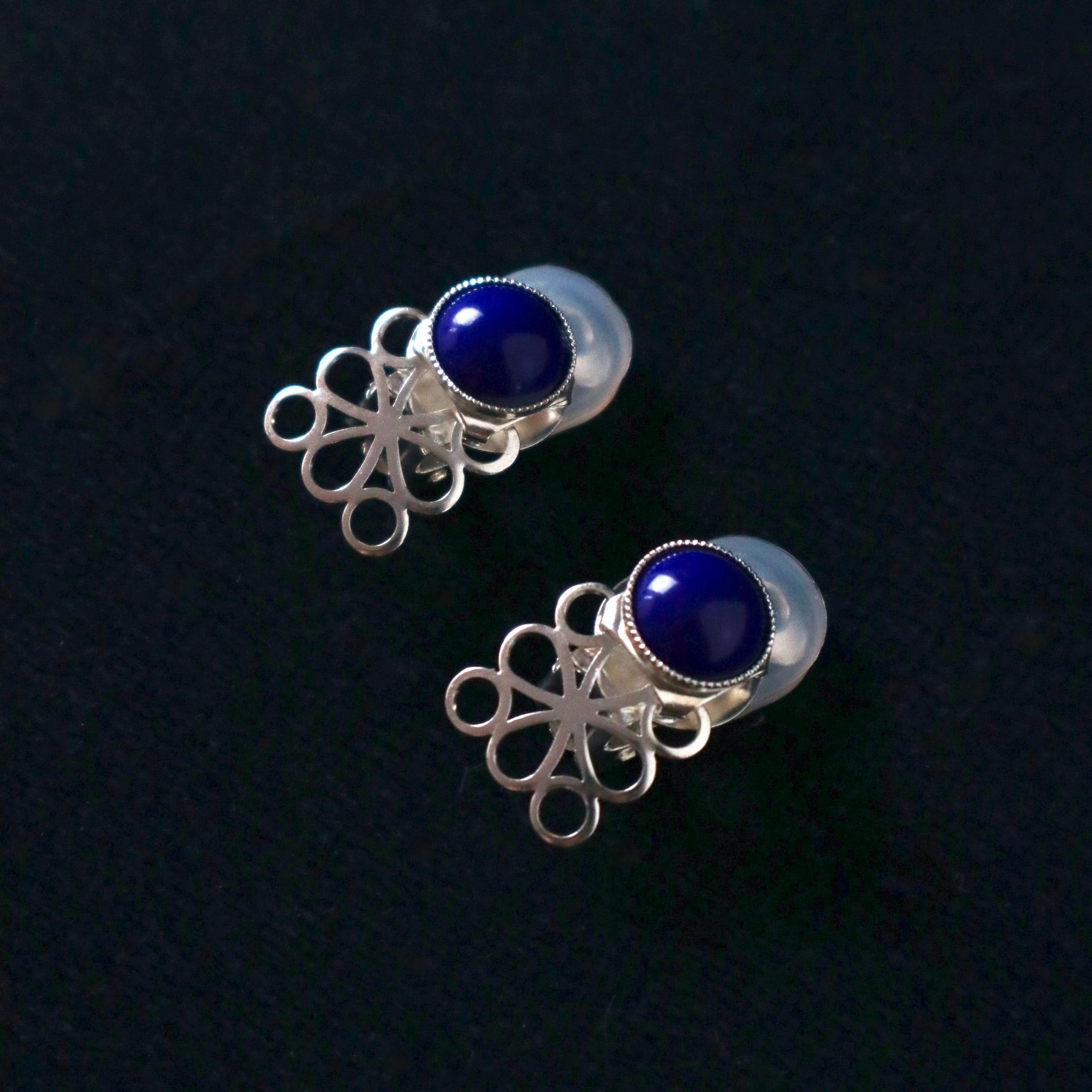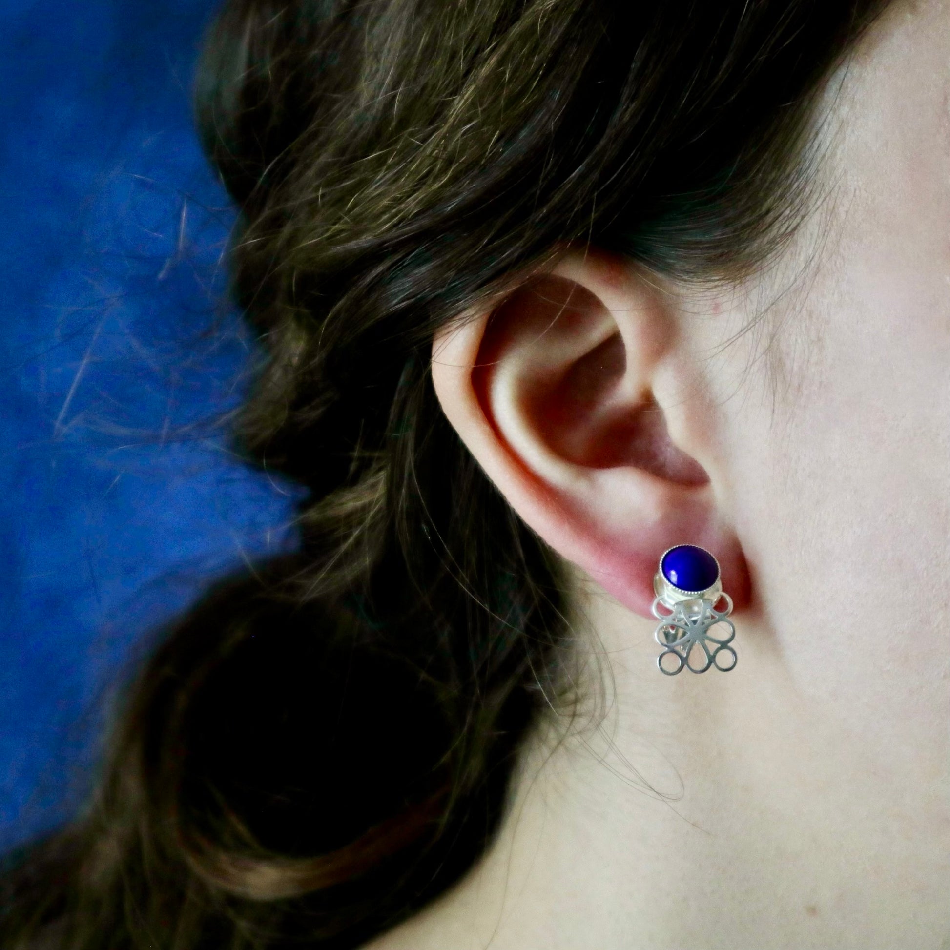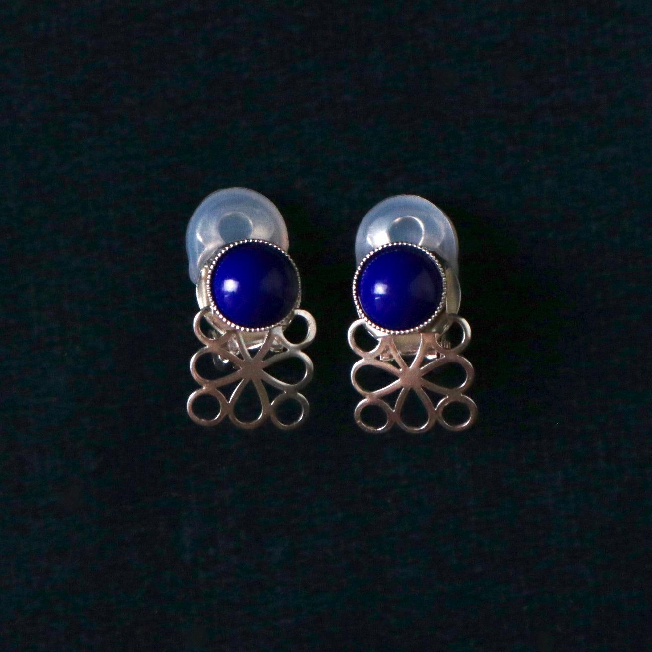 Le cabochon bleu marine rappelant le lapis lazuli est du Swarovski vintage.