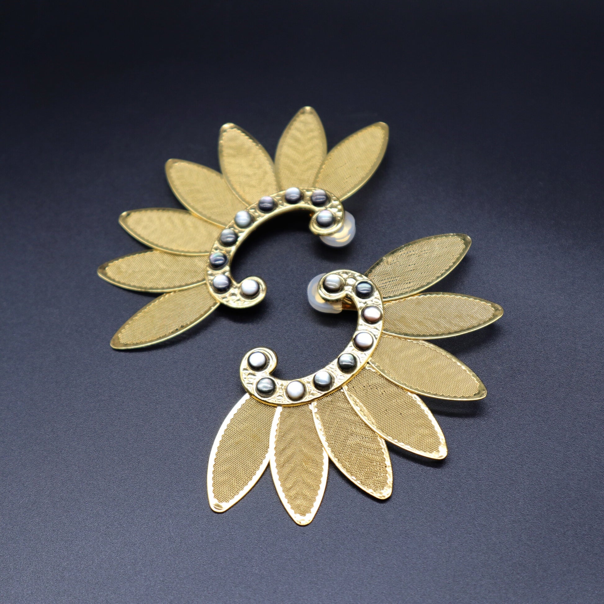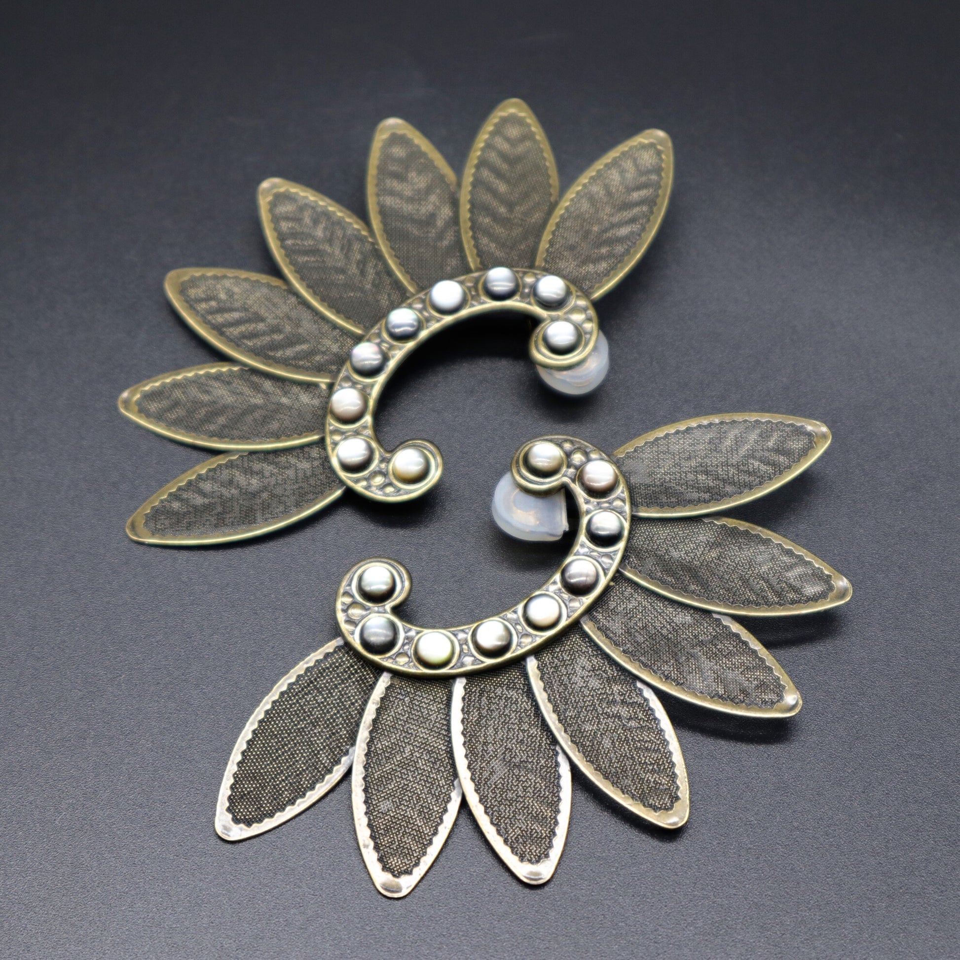 Boucles d'oreilles assez imposantes mais l'impression légère qui sont inspirées par la robe comme une fleur de lotus portées par le statues bouddhiste de la période Nara au Japon.