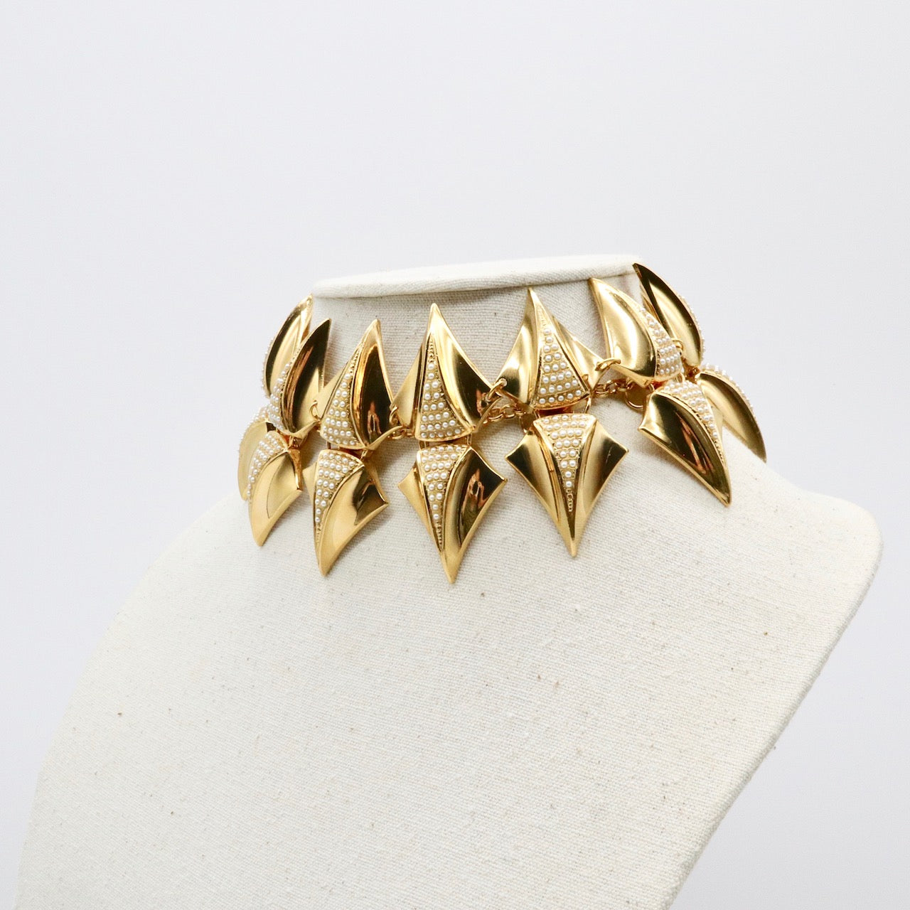 Ce collier est inspiré par le Papillon de Mer, qui est fabriqué à la main en laiton doré à l'or fin 24k avec 506 perles nacrée minuscules en cristaux de Swarovski!!!