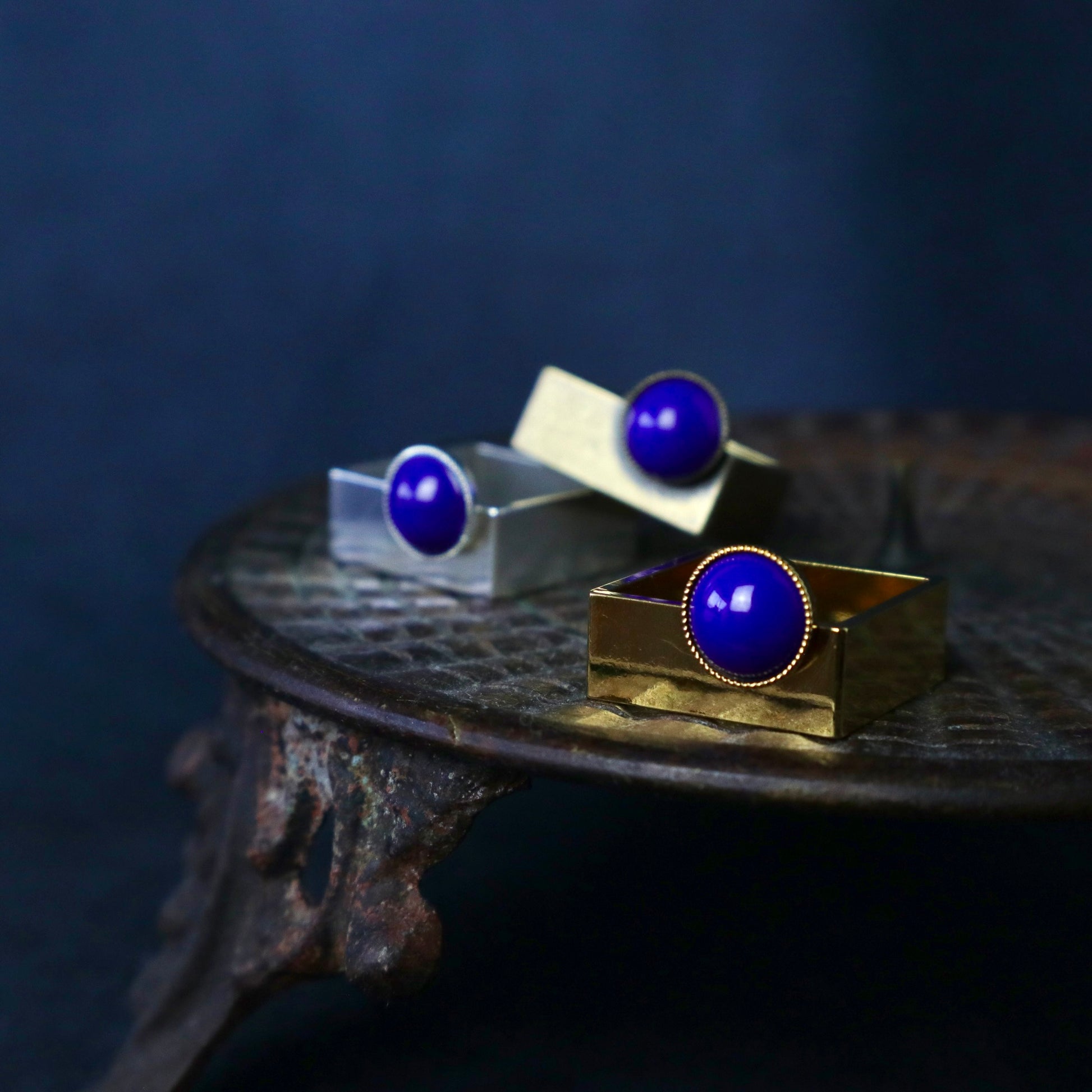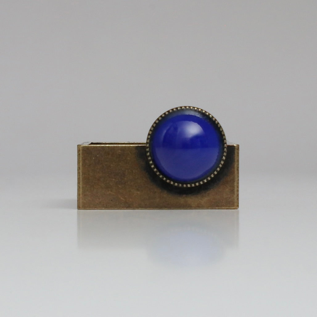 Le cabochon bleu marine intense est du Swarovski vintage.
