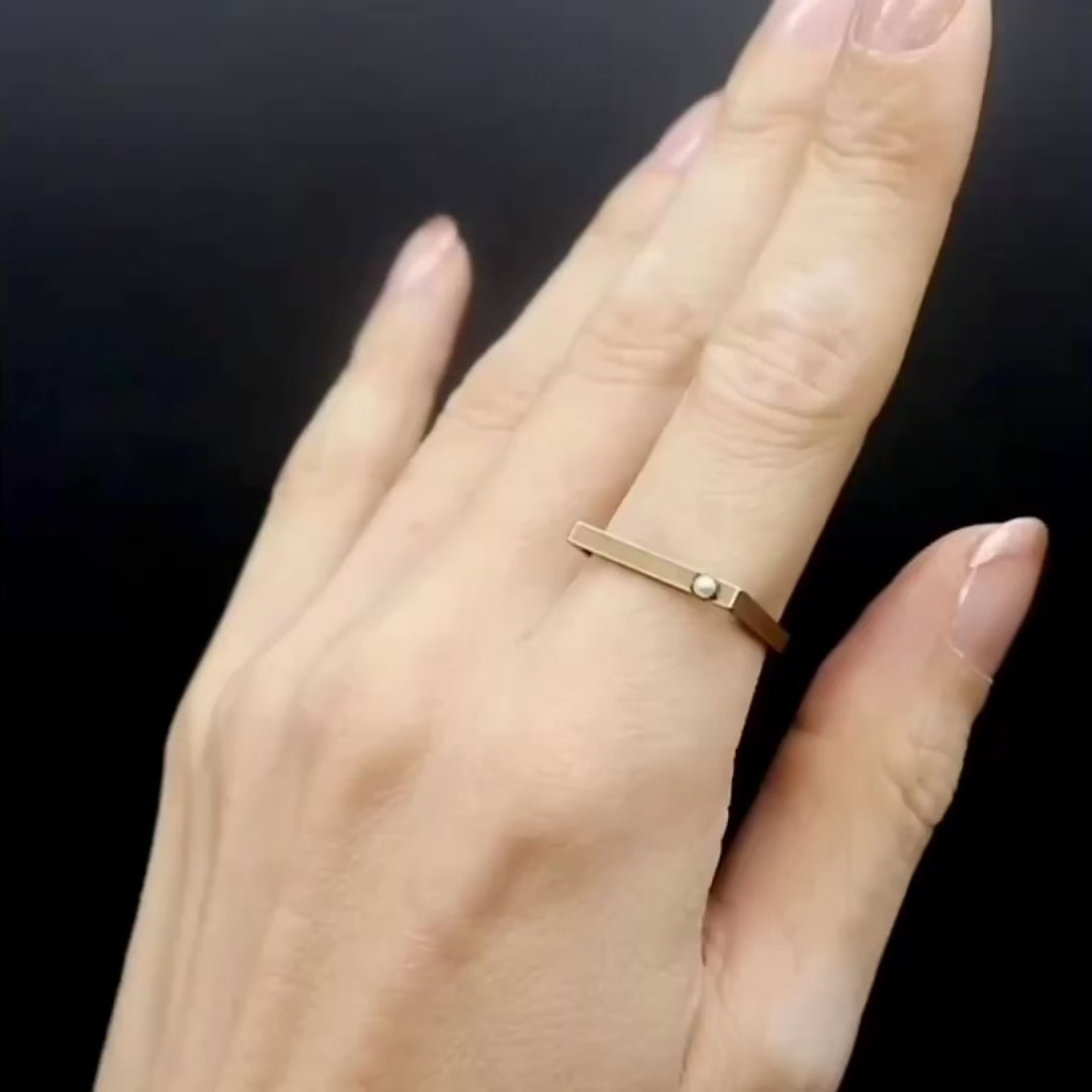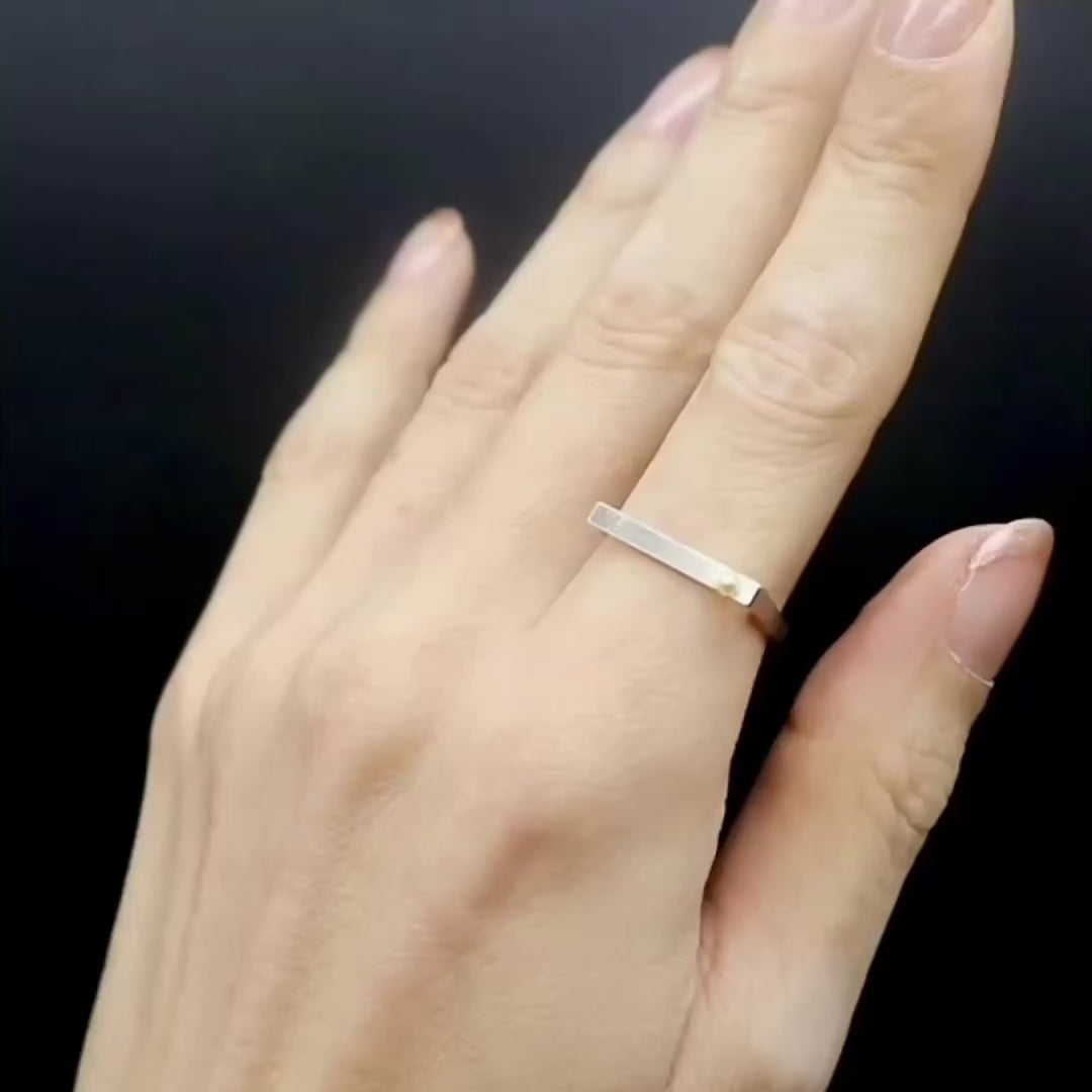 スクエア型の特性上、指に通す際はリングを斜めにするとスムーズです。