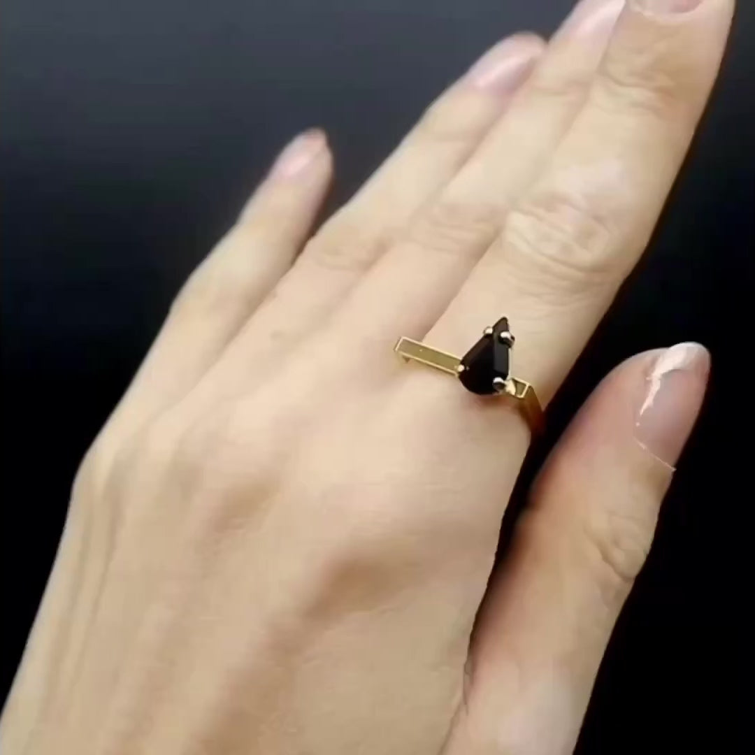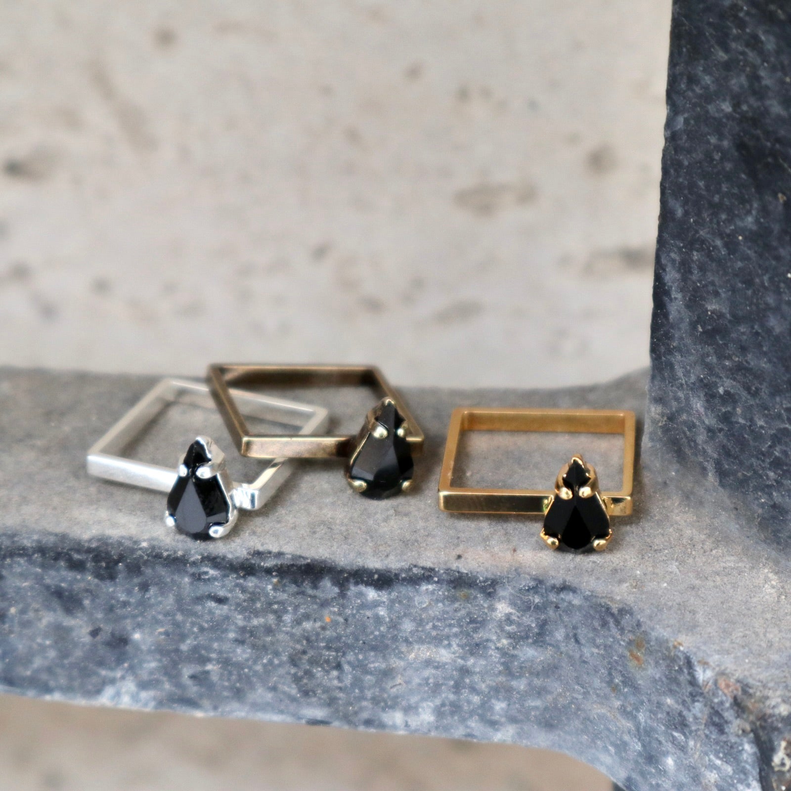 スクエア型の特性上、指に通す際はリングを斜めにするとスムーズです。