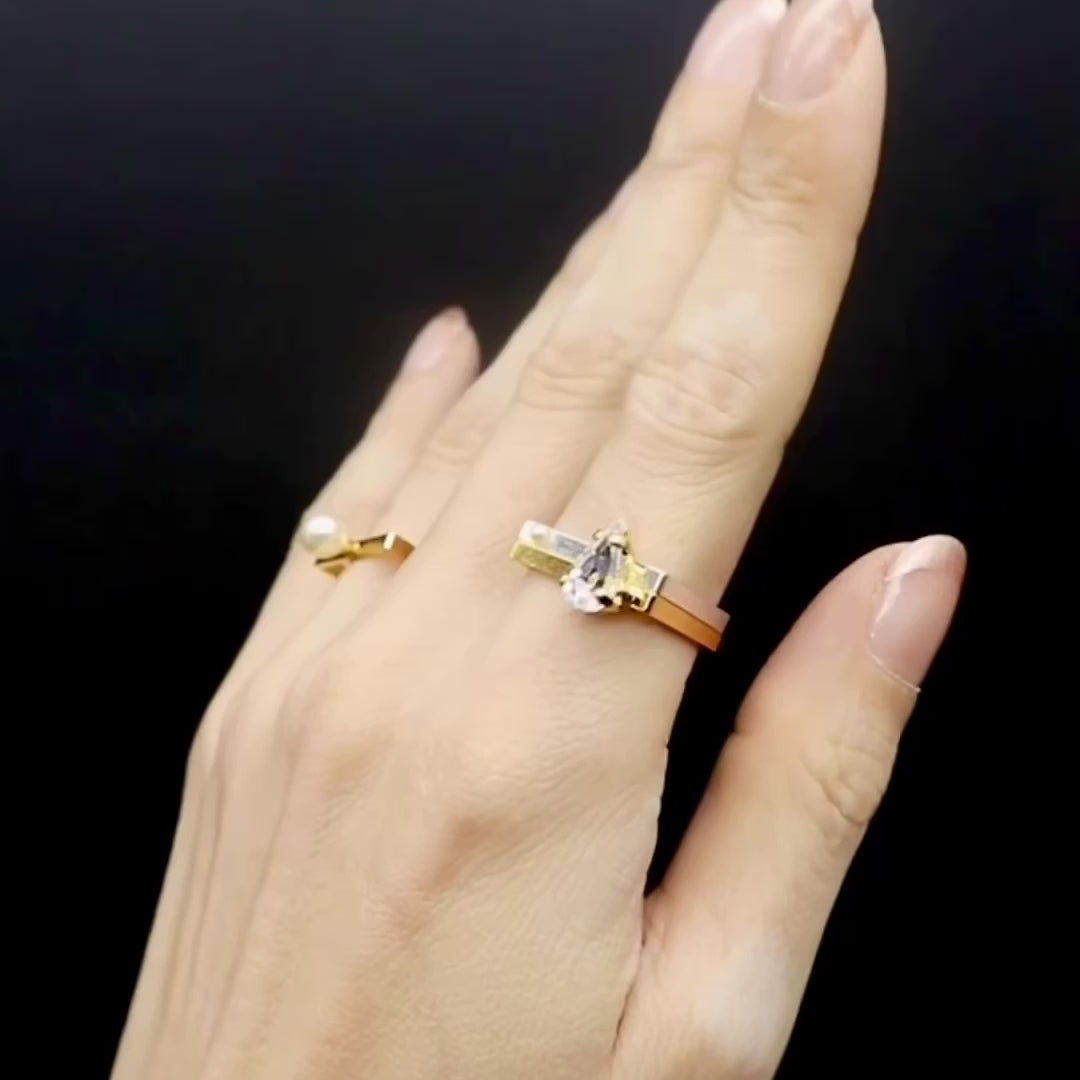 幾何学の静けさをまとい、手元に優美なニュアンスを添えるフランス製スクエアリング。